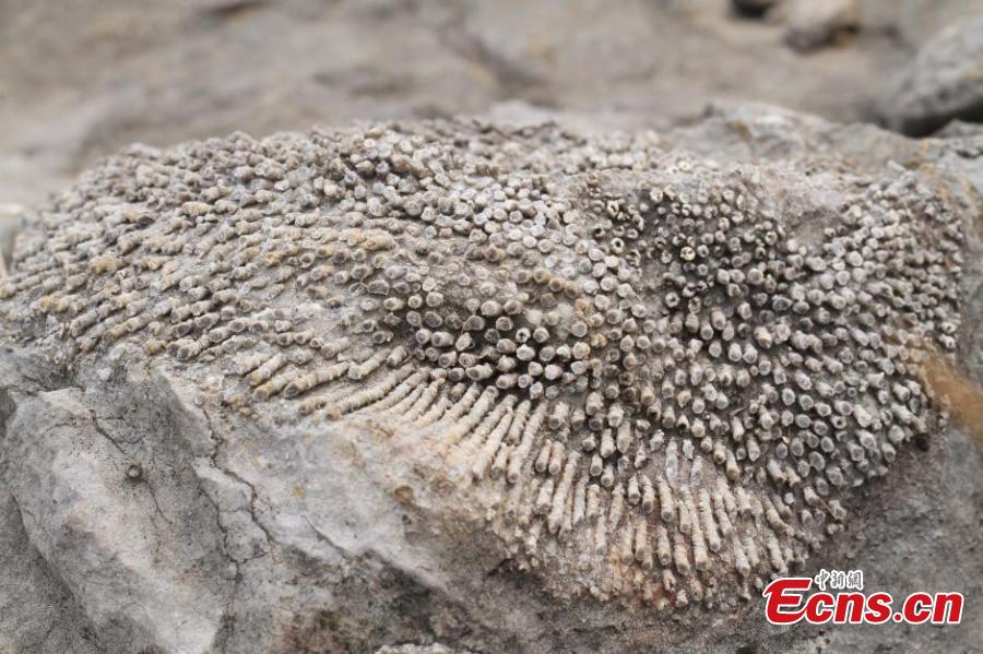 Fossils of corals and conchs are found in limestone at a village in Guiyang County, Central China’s Hunan Province. The fossils were formed 350 million to 190 million years ago and are scattered across several thousands of square meters. (Photo: China News Service/Li Shi)