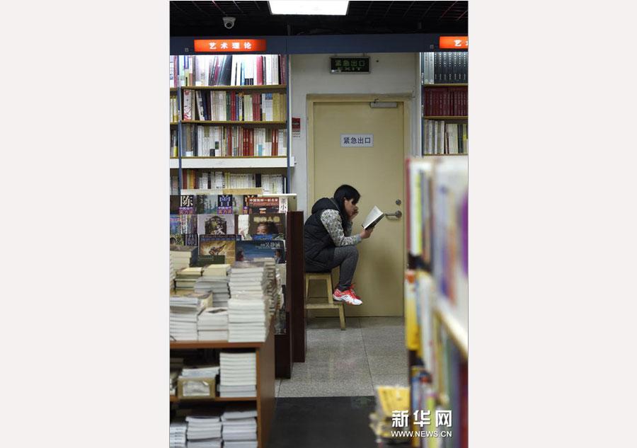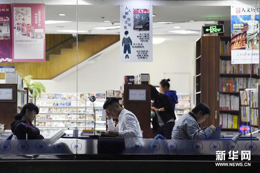 Reading enthusiasts inside the 24-hour Sanlian Taofen Bookstore at 12:27 a.m. in Beijing on April 20, 2016. (Photo/Xinhua)