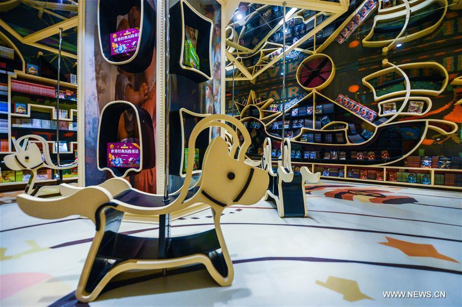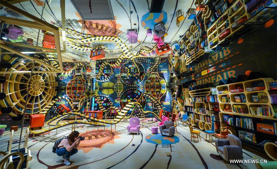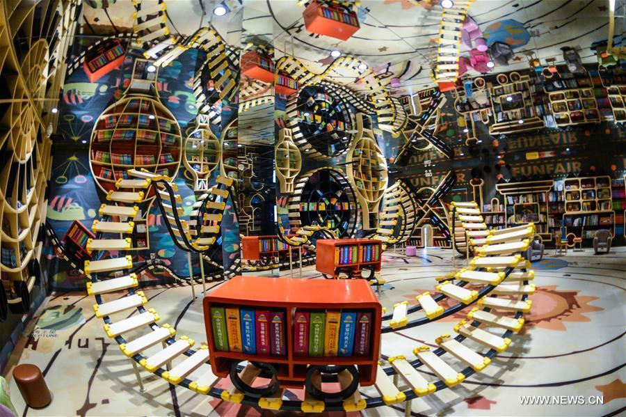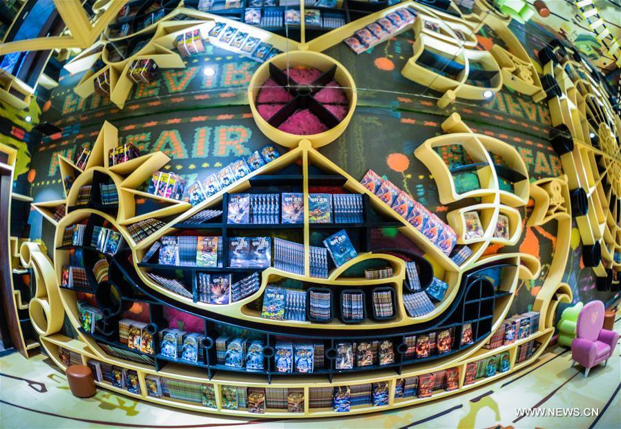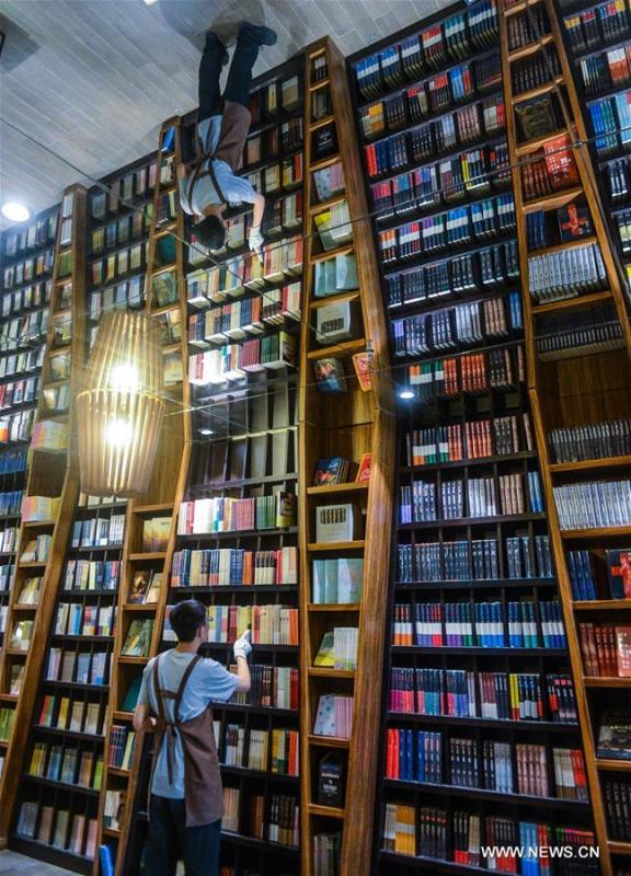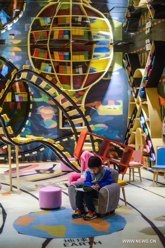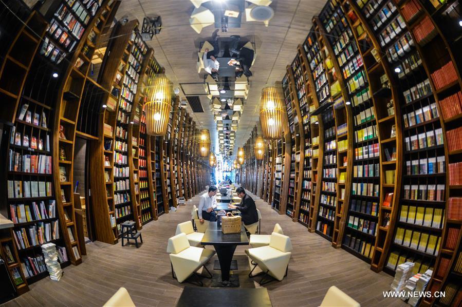Photo taken on April 22, 2016 shows a reading hall at the Zongshuge Bookstore in Hangzhou, capital of east China's Zhejiang Province. Zhongshuge Bookstore in Shanghai has put its new branch in Hangzhou into trial operation on April 23, the World Book Day. The local bookshop brand opened its first bookshop in Shanghai's Songjiang District in 2013. It has been dubbed the "most beautiful bookstore" for its stylized interior decoration. (Xinhua/Xu Yu)