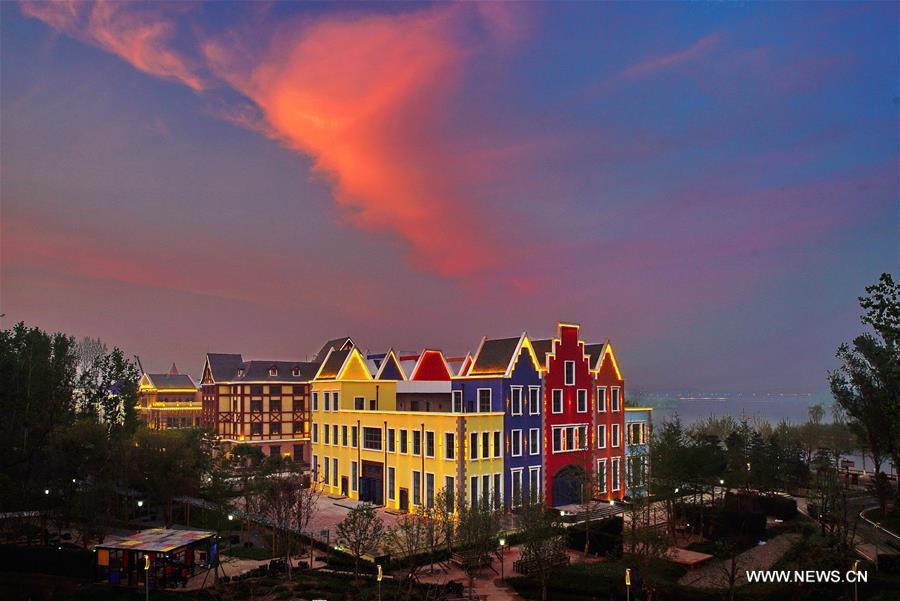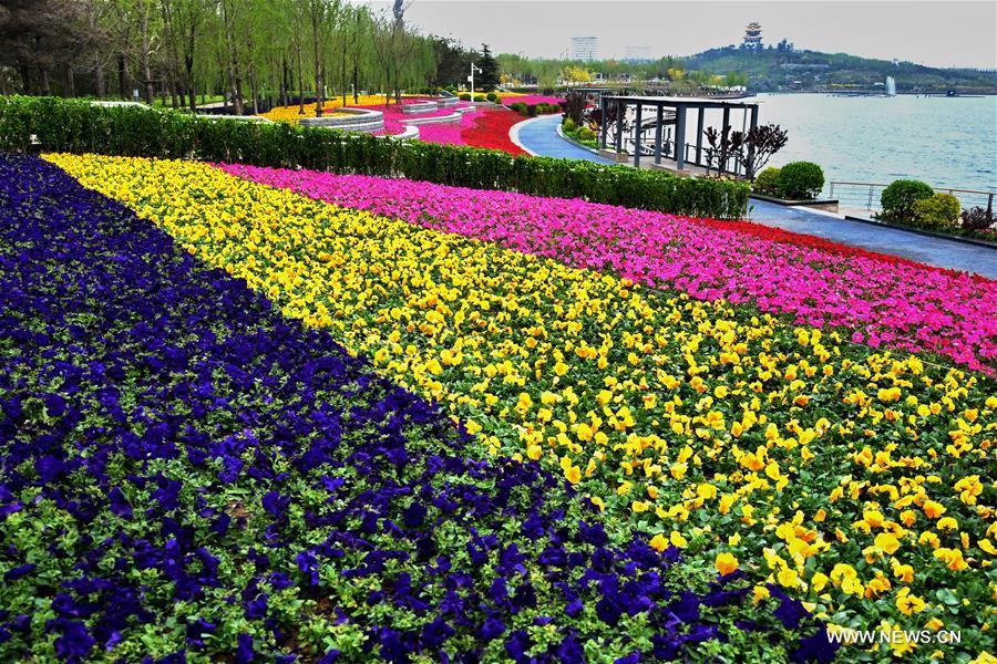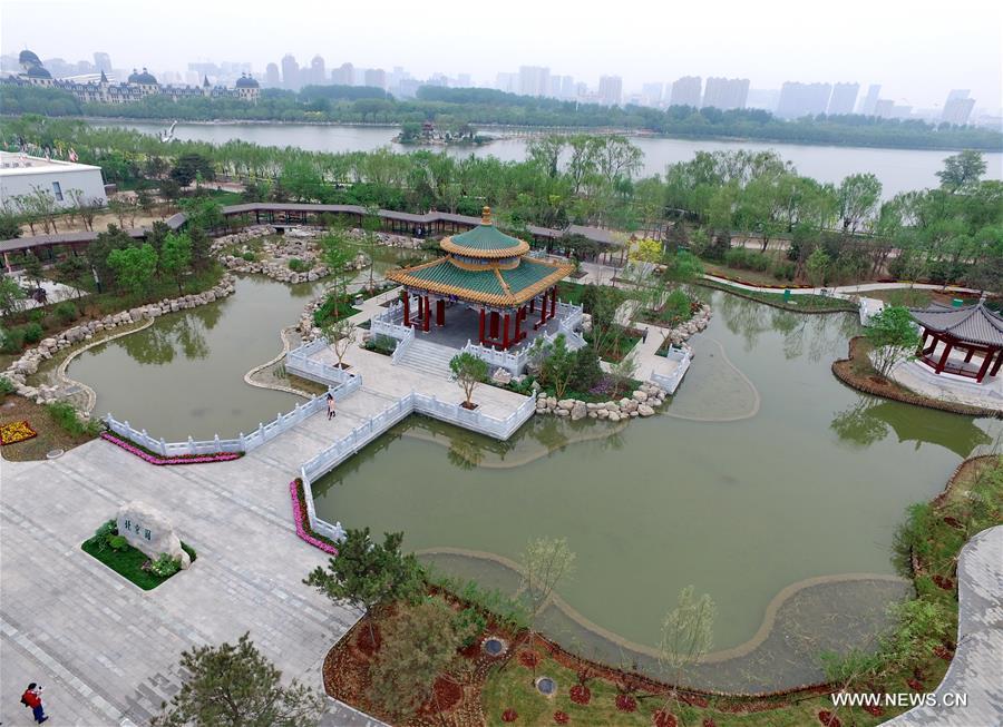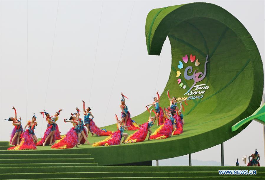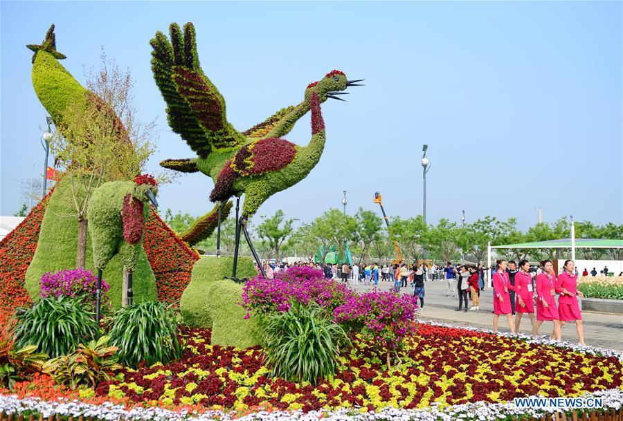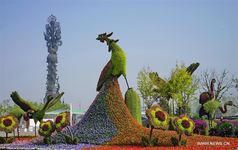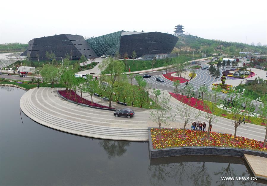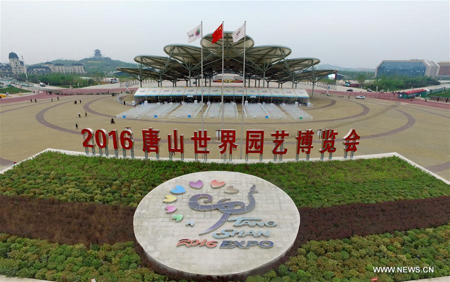 Photo taken on April 27, 2016 shows a square of the Tangshan International Horticultural Exposition 2016 in Tangshan City, north China's Hebei Province. The 171-day expo will kick off here on April 29. The expo venue was originally a century-old mine in China's iron town of Tangshan. (Photo: Xinhua/Zhu Xudong)