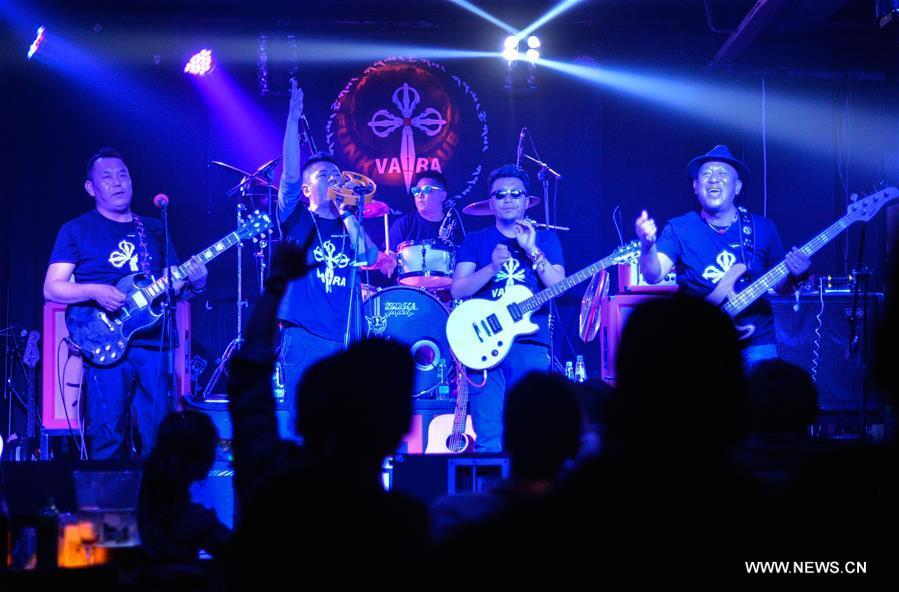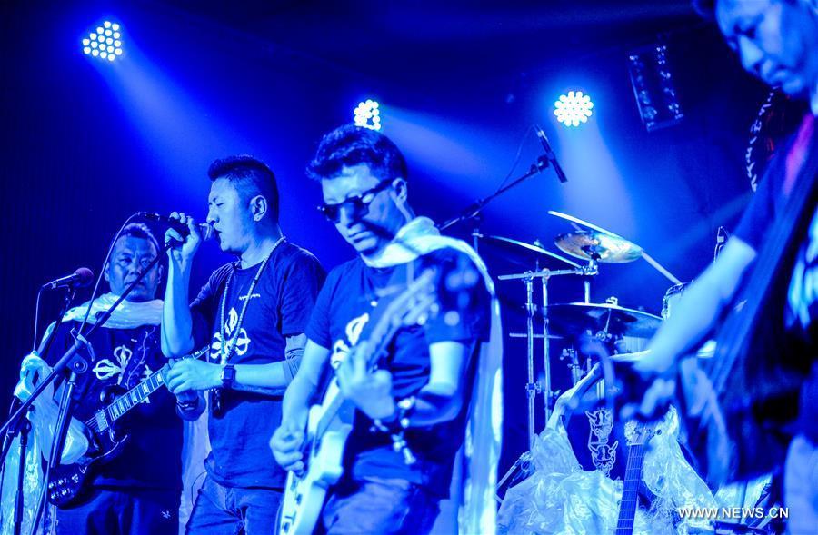 Members of the Tianchu band perform to mark the 17th founding anniversary in Lhasa, capital of southwest China's Tibet Autonomous Region, May 1, 2016. Tianchu, the region's first modern rock band, consists of six young men of the Tibetan ethnic group. In 2003, they issued a Tibetan-language album with the band name. Two years later, Tianchu was known for its performance in Midi festival. Till now, there are more than 10 rock bands in Tibet. (Photo: Xinhua/Purbu Zhaxi)