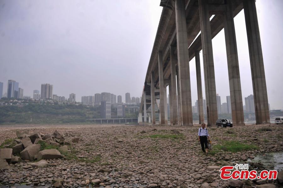 The riverbed is exposed as water levels continue to drop on the Yangtze River in Southwest China’s Chongqing Municipality, May 4, 2016. (Photo: China News Service/Chen Chao)