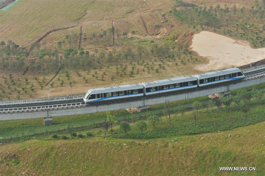 China's 1st domestically designed, manufactured magnetic levitation line starts trial run(1/7)