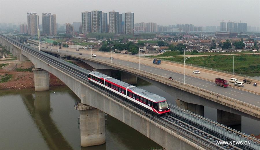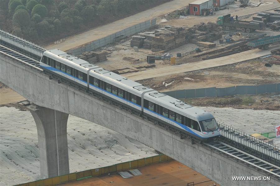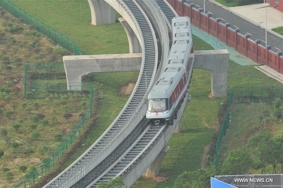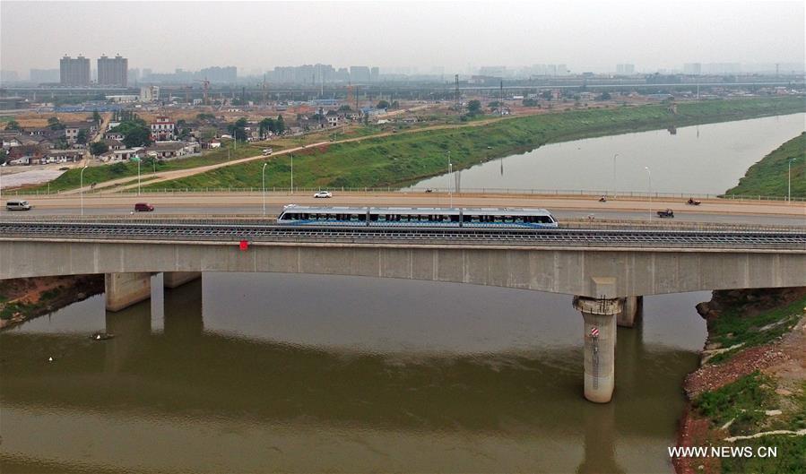 A train runs on the magnetic levitation line in Changsha, capital of central China's Hunan Province, May 6, 2016. A trial operation of China's first domestically designed and manufactured magnetic levitation line started in Changsha on Friday. The maglev shuttles between Changsha's south railway station and the airport. It takes about ten minutes to complete the 18.55-km journey, according to a statement from operator Hunan Maglev Transport Co. The 48-meter-long train can carry 363 people in three carriages. It can achieve a maximum speed of 100 km per hour. (Photo: Xinhua/Long Hongtao)