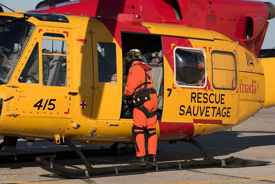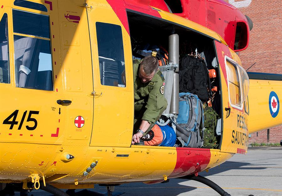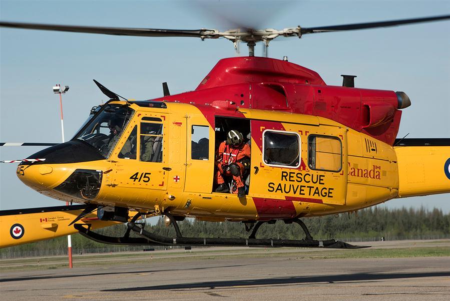 Photo provided by Canadian Armed Forces shows a soldier preparing a helicopter for departure for Fort McMurray, Alberta, Canada, on May 6, 2016. The raging wildfire in western Canada that has forced a massive evacuation in Fort McMurray has grown to 101,000 hectares overnight and is moving away from Fort McMurray, Alberta Premier Rachel Notley said Friday. (Xinhua/Canadian Armed Forces)
