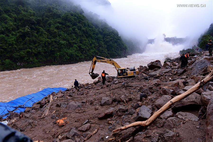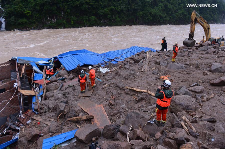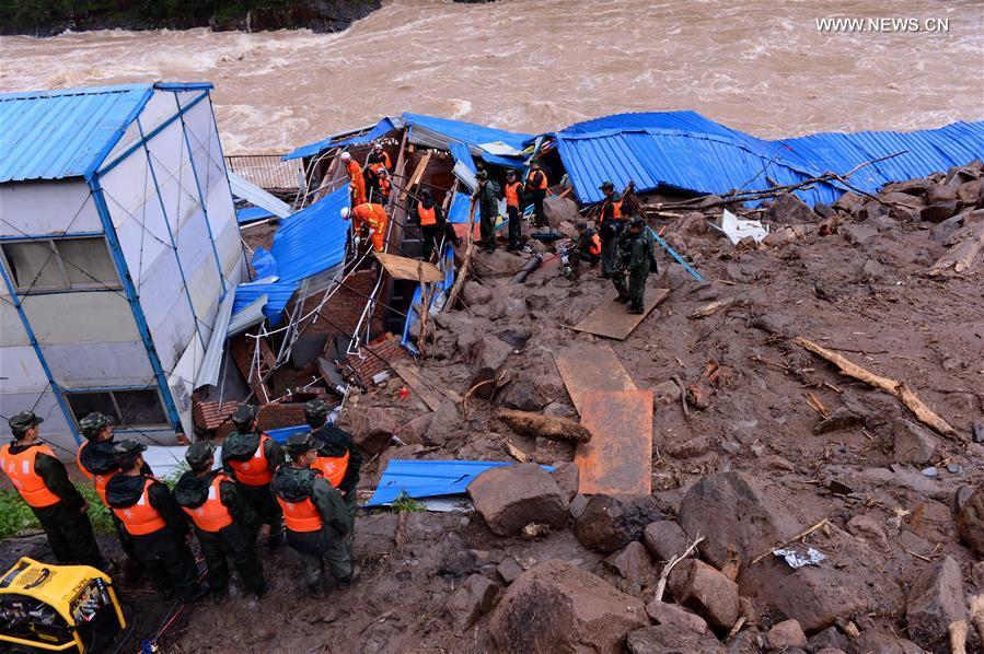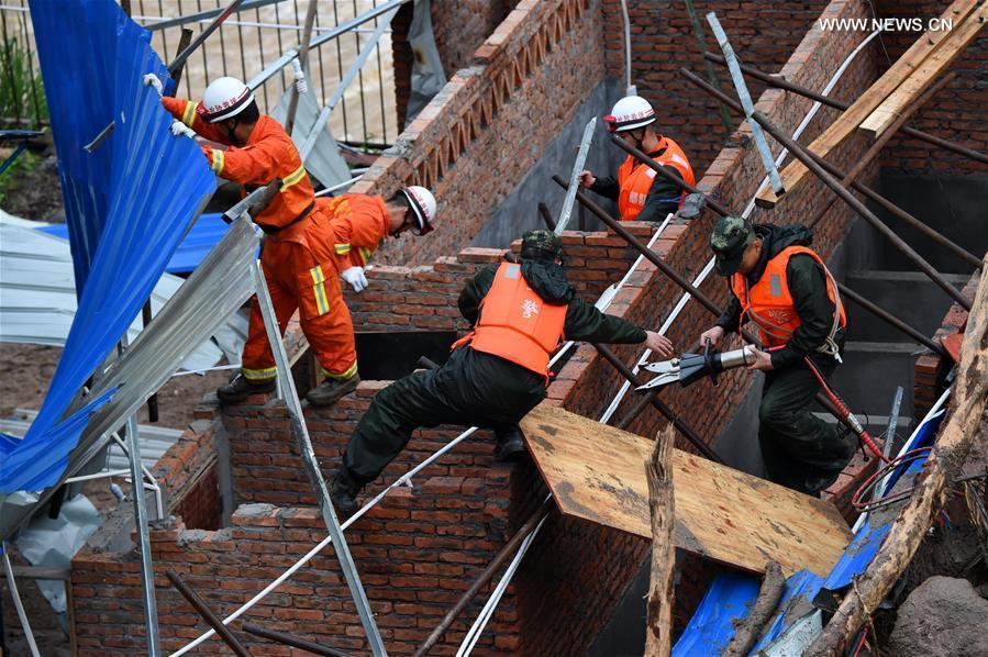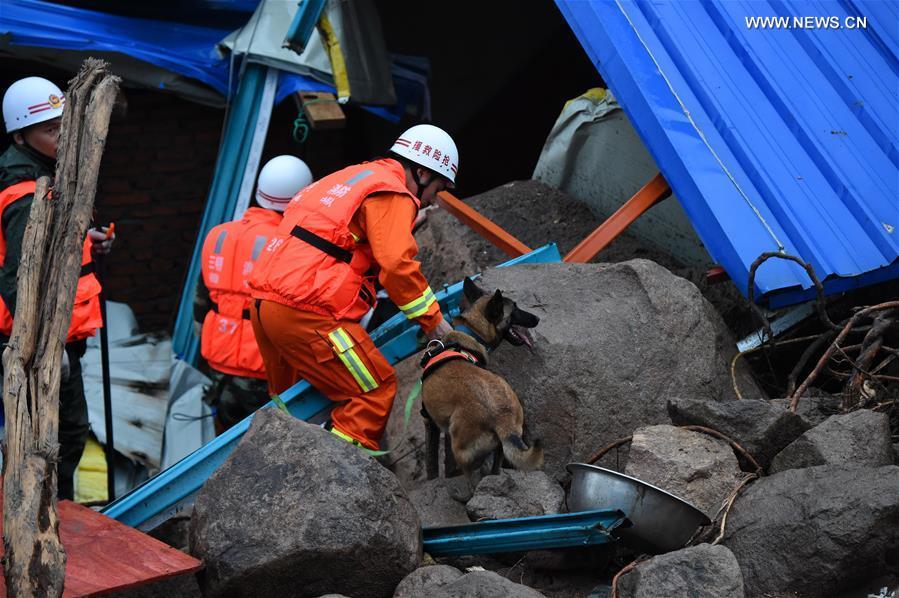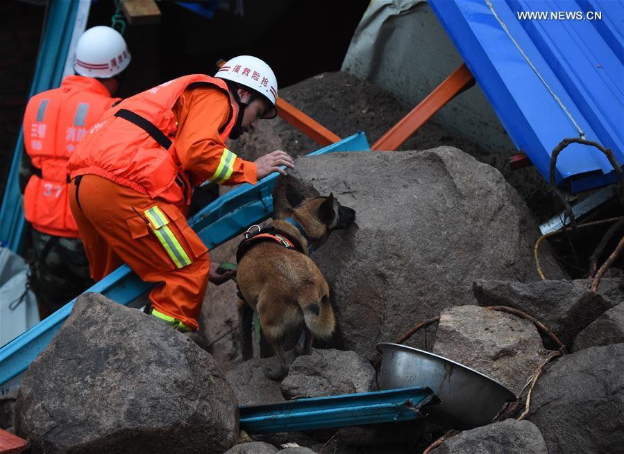 Rescuers search for signs of life at the landslide site in Taining County, southeast China's Fujian Province, May 8, 2016. Thirty-three people were still missing by now due to the landslide that occurred at around 5 a.m. here on Sunday. (Photo: Xinhua/Zhang Guojun)
