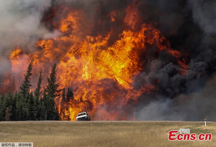 A wildfire burns near Highway 63 south of Fort McMurray, Alberta, Canada, May 8, 2016. The Alberta government said the massive blaze in the province will cover more than 200,000 hectares (494,211 acres) by Sunday and continue to grow because of high temperatures, dry conditions and high winds. Chad Morrison of Alberta Wildfire said it’s not uncommon to fight such an inferno in forested areas for months. (Photo/Agencies)