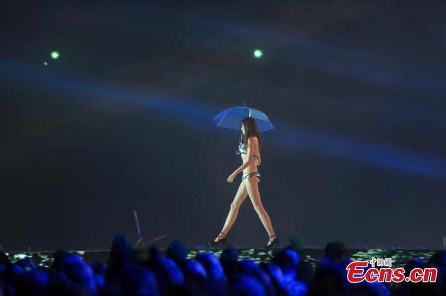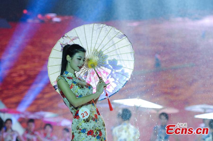 Contestants wearing cheongsam and holding umbrellas perform in the rain during the China final of the Miss Tourism City Champion in Chishui City, Southwest China’s Guizhou Province, May 8, 2016. More than 50 contestants entered the competition, which was one of the events held to promote tourism in the region. (Photo: China News Service/He Junyi)