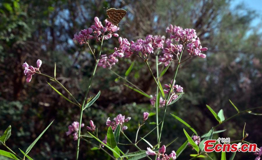 A plant blossoms at the Turpan Eremophytes Botanical Garden of the Chinese Academy of Sciences in Turpan City, Northwest China’s Xinjiang Uygur Autonomous Region. Located at altitudes from 105 m to 76 m below sea level, it is known as the lowest botanical garden on earth. Various arid desert plants have been collected at the gardens, which play a role in the conservation of the plants. More than 700 species of eremophytes are found in the gardens, the largest collection in central Asia. (Photo: China News Service/Sun Tingwen)