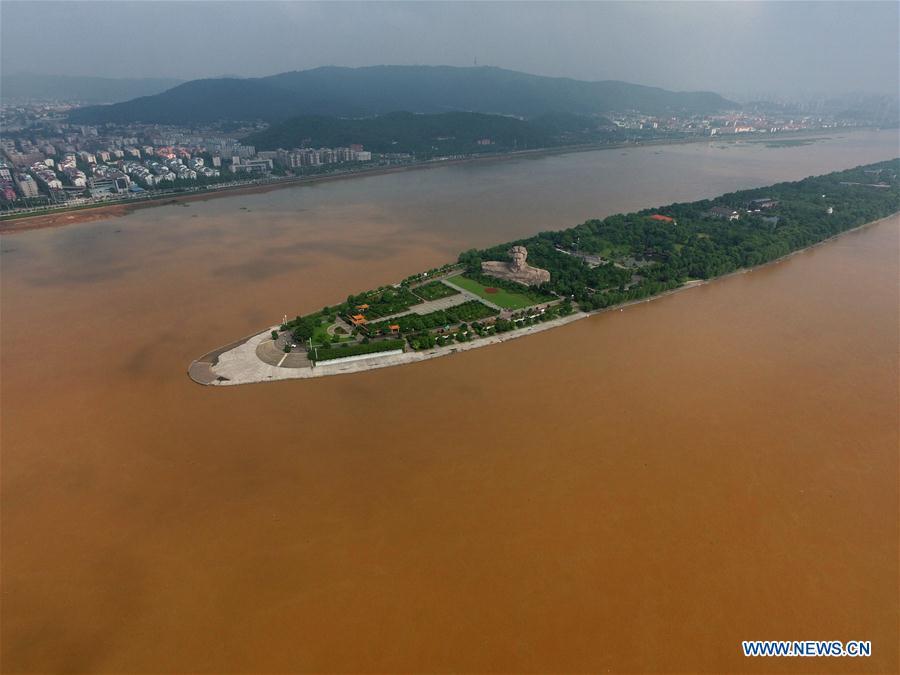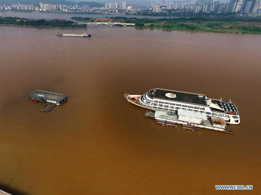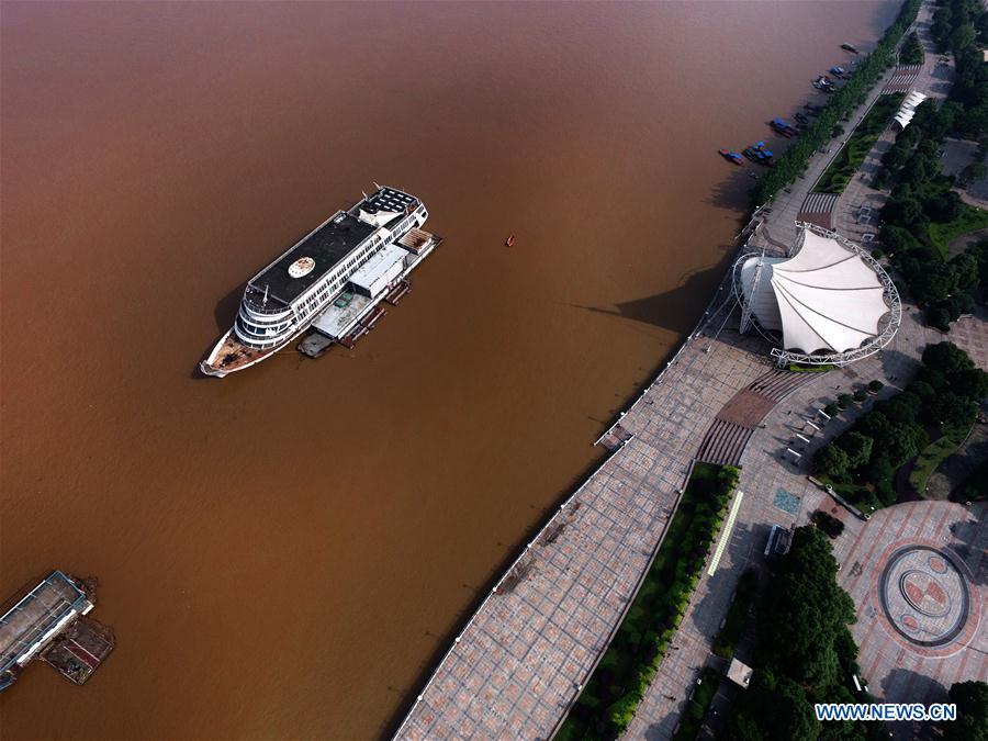 Photo taken on May 10, 2016 shows the main channel of the Xiangjiang River in Changsha, capital of central China's Hunan Province. Since the flood season came, the biggest flood peak of the Xiangjiang River has flowed through Changsha on Tuesday. (Xinhua/Long Hongtao)