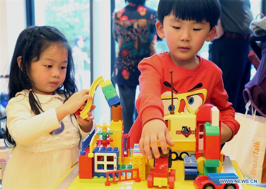 Visitors have fun at the Lego Flagship Store in the Disney Town of the Disney Resort in Shanghai, east China, May 11, 2016. The Lego flagship store was officially opened to the public on Wednesday. (Xinhua/Chen Fei)