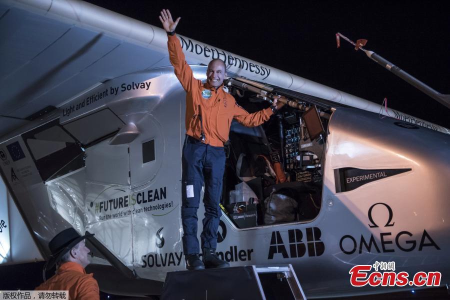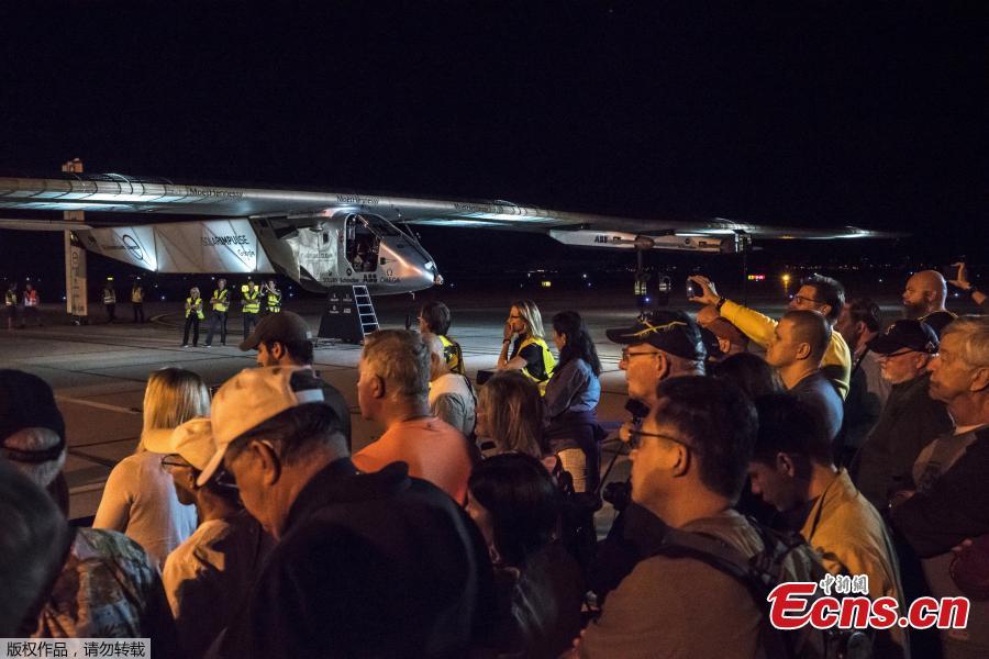 Team members and media prior to the take off of Solar Impulse 2, a solar powered airplane, at Phoenix Goodyear Airport in direction Tulsa International Airport, May 12, 2016. Solar Impulse 2 took off from Arizona at 10:05 AM UTC, 12:05 PM CET, 3:05 AM local time for a journey that is expected to last 17 hours and 50 minutes until landing in Oklahoma. (Photo/Agencies)