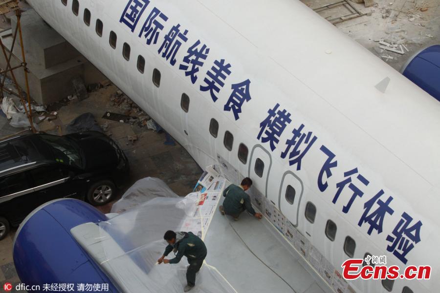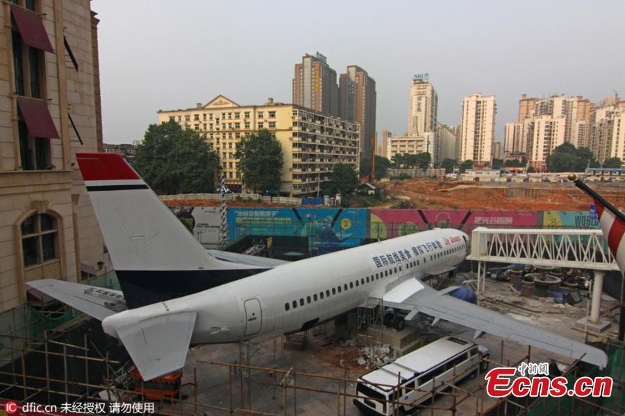 A retired Boeing 737 is being renovated to become a restaurant in Wuhan City, the capital of Central China’s Hubei Province, May 12, 2016. The total cost of purchasing the aircraft, then transporting it from Indonesia, and renovating it, including building a flight simulation system, amounted to 35 million yuan ($5.4 million). The restaurant, the first one of its kind in China, is set to open in July. (Photo/IC)