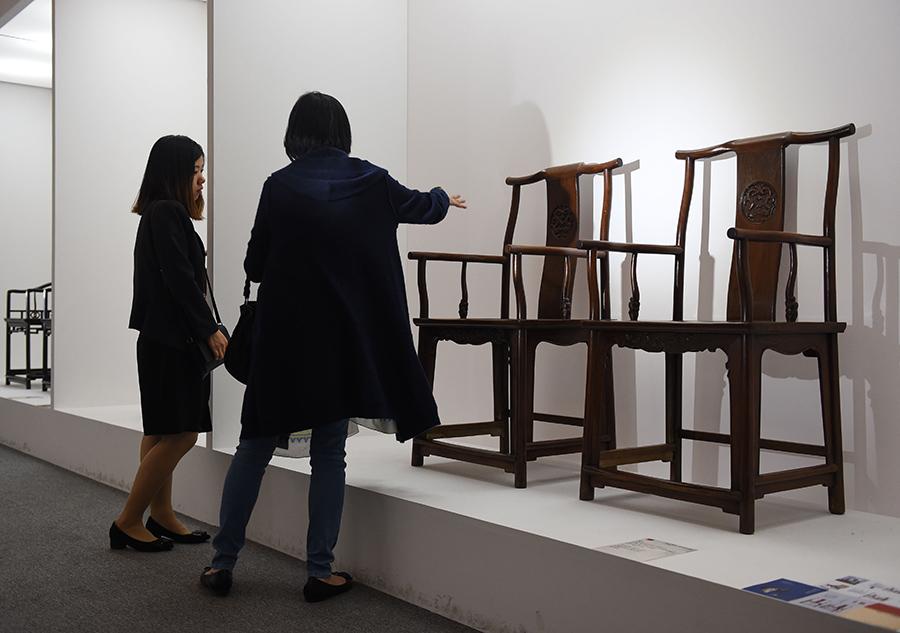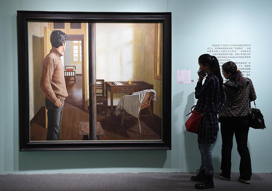 Viewers are staring at oil painter Yuan Yiqing's work Spring Is Coming from the '85 New Wave Art session at the preview of China Guardian 2016 Spring Auctions on May 12, 2016. (Photo/Xinhua)