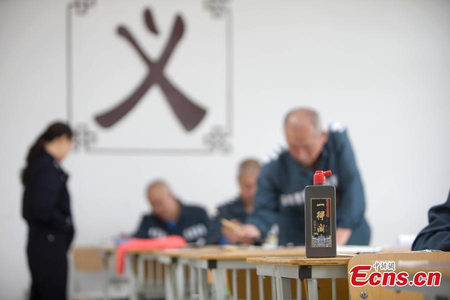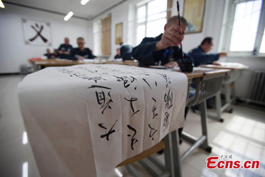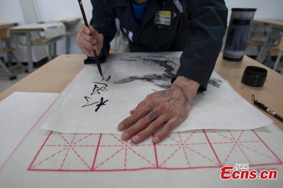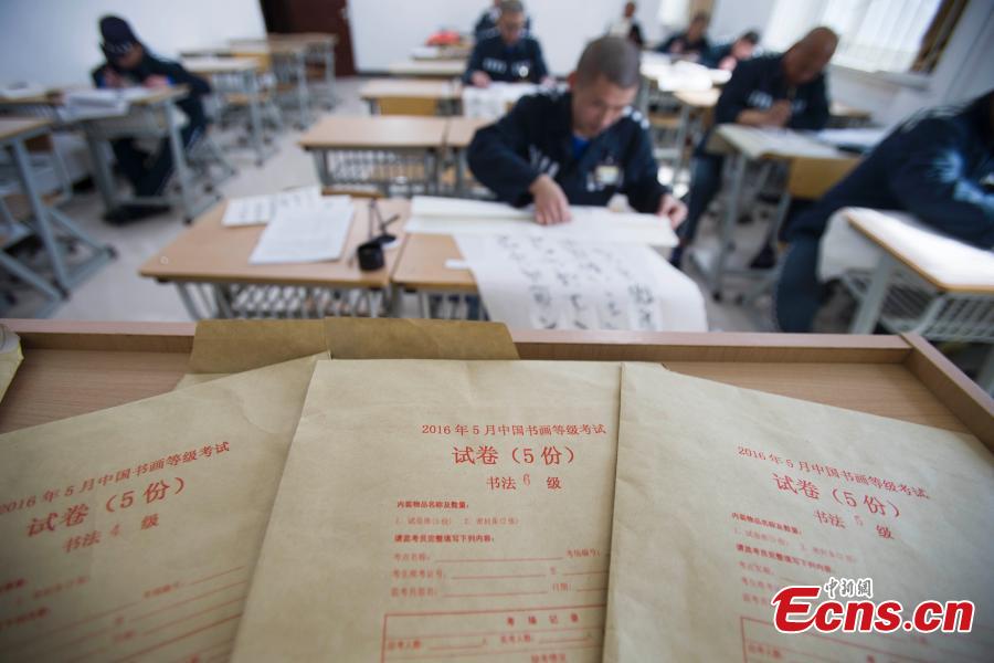 Inmates take a grade test in Chinese calligraphy and painting at the No. 1 Prison in Taiyuan City, the capital of North China’s Shanxi Province, May 15, 2016. The Taiyuan prison is the only one in China to offer training in calligraphy and painting and also conduct grade test for inmates. More than 120 inmates took the grade test. (Photo: China News Service/Zhang Yun)