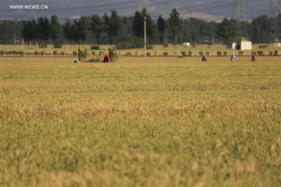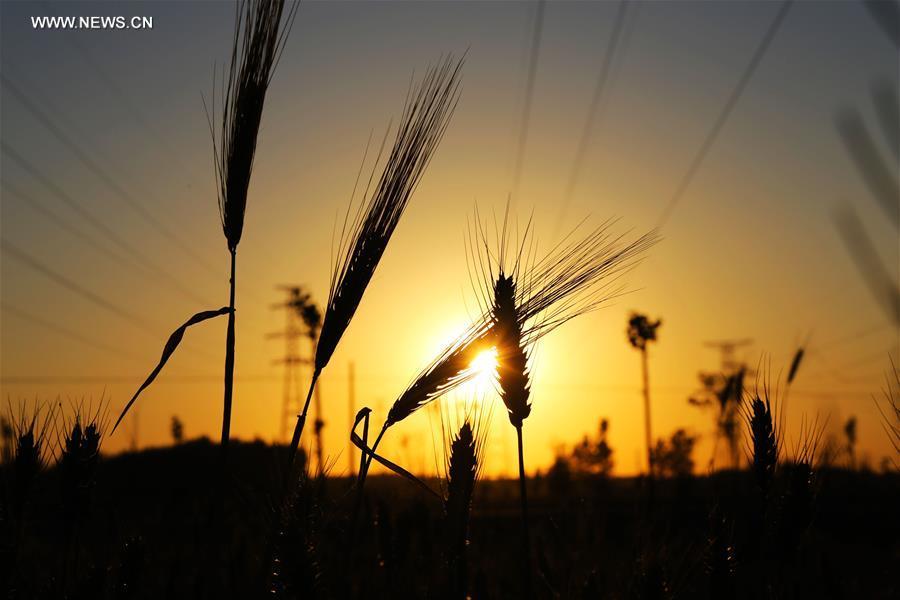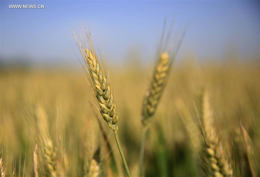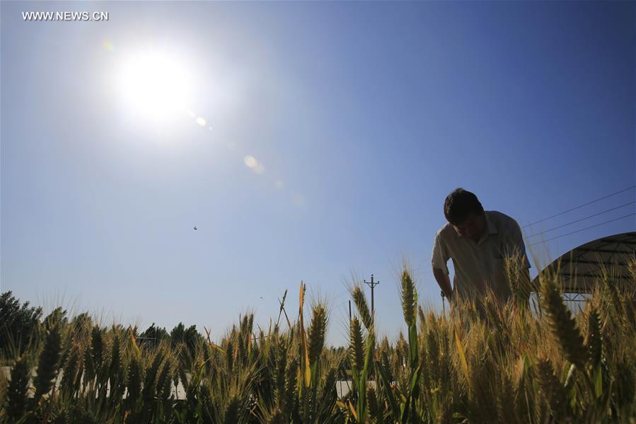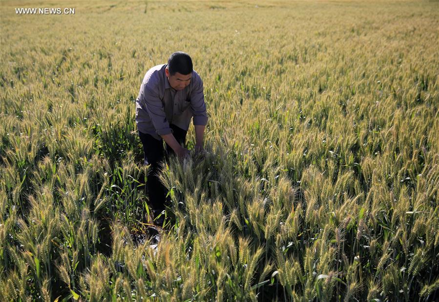 A farmer checks the growth of wheat in Zaozhuang Village of Baofeng County, central China's Henan Province, on May 16, 2016. Traditional Chinese solar term Xiaoman (grain buds) falls on May 20 this year, which means seeds from grain are becoming full. (Xinhua/He Wuchang)