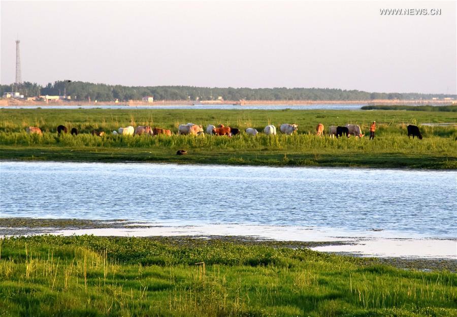 Photo taken on May 16, 2016 shows the scenery of Suya Lake Wetland in Ruyang County, cenral China's Henan Province. Suya Lake, a reservoir with an area of more than 230 square kilometers, has obtained its impressive scenery by continuous and effective protection of wetland. (Xinhua/Sun Kai)