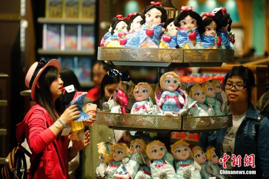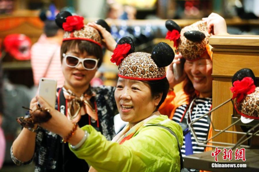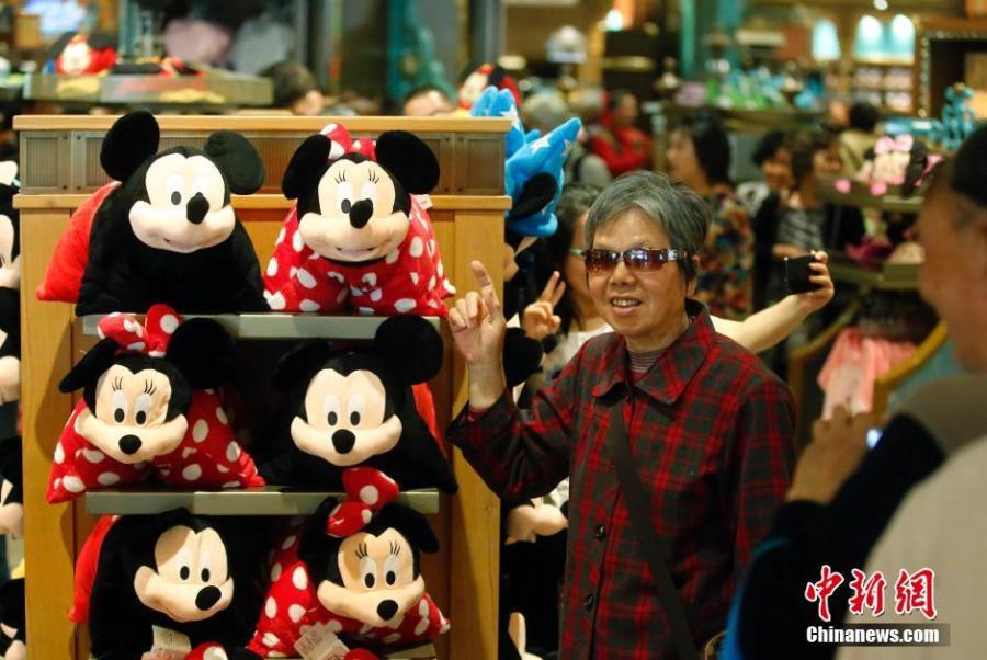 Tourists visit a shop at the Shanghai Disneyland Resort, May 18, 2016. The theme park is trialing services before it officially opens on June 16. (Photo: China News Service/Yang Yanjun)