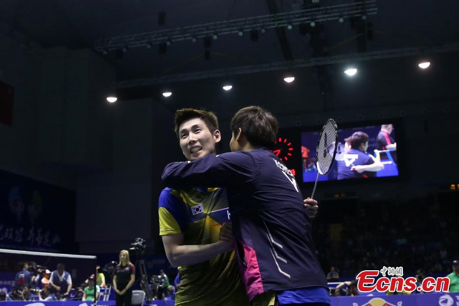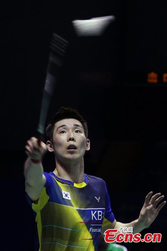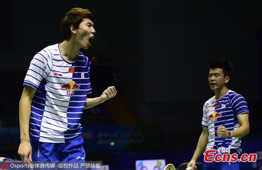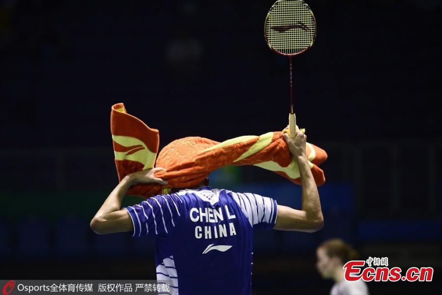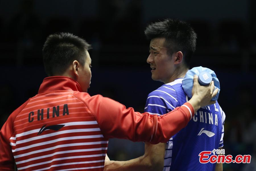 Chen Long of China talks with his coach during the men's singles quarter finals group match in the Thomas Cup badminton tournament in Kunshan, East China's Jiangsu province, May 19, 2016. South Korea knocked out hosts China 3-1 in the Thomas Cup badminton quarterfinals in Kunshan, East China's Jiangsu province, May 19, 2016. It means China has failed to make the semi-finals for the first time since 1979. (Photo: China News Service/Han Haidan)