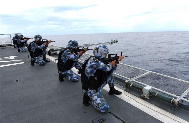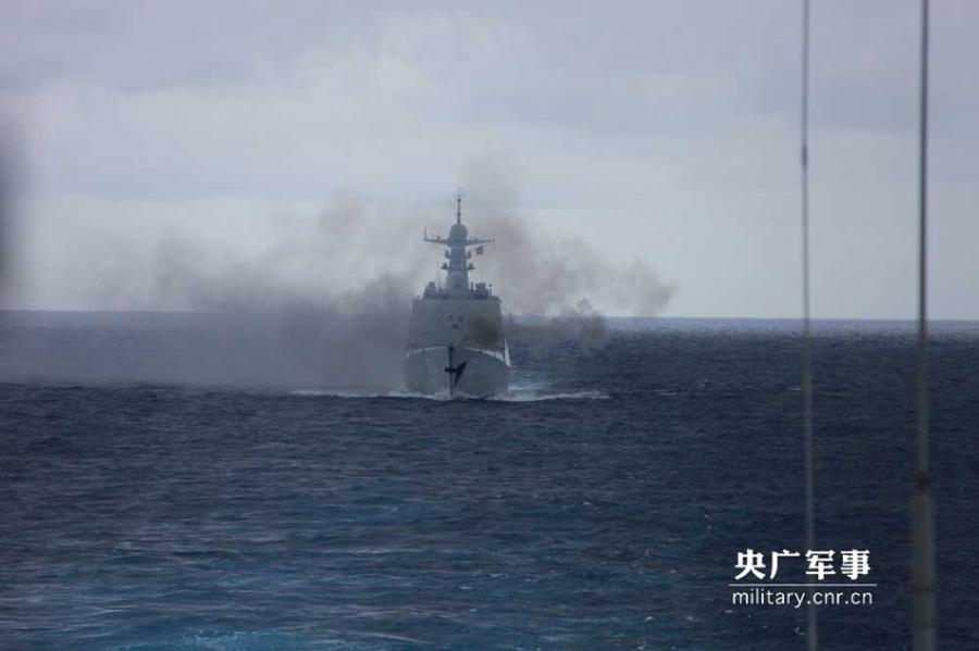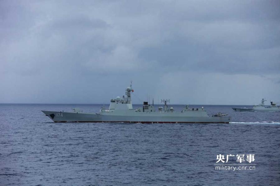 The guided-missile destroyer Lanzhou changes its course in preparation for a live-fire training exercise. An open sea training taskforce with the PLA Navy South China Sea Fleet consisting of the guided-missile destroyers Hefei (Hull Number 174) and Lanzhou(Hull Number 170), guided-missile frigate Sanya (Hull Number 574) and the comprehensive supply ship Honghu ((Hull Number 963) carried out live-fire training in an undisclosed sea area of the West Pacific on May 21, 2016. (Photo/81.cn)