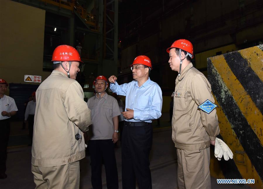 Chinese Premier Li Keqiang visits a heavy truck manufacturer in Shiyan, central China's Hubei Province, May 23, 2016. Li Keqiang has highlighted reform and innovation to upgrade growth during his visit to Shiyan and Wuhan in Hubei Province on Monday and Tuesday. (Photo: Xinhua/Rao Aimin)