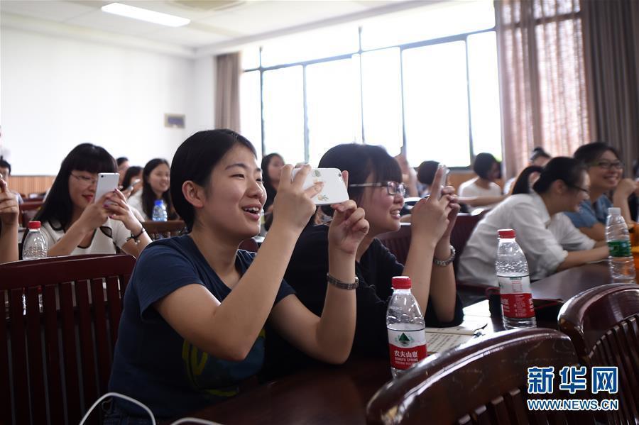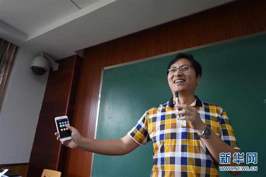 A student shows questions to the teacher in a selective course called Internet and New Media with WeChat at Chongqing University in Southwest China’s Chongqing Municipality, May 24, 2016. The course requires students to sign up with the popular mobile messaging app developed by China’s Internet giant Tencent. Students can also send questions to the teacher during class using WeChat. (Photo/Xinhua)
