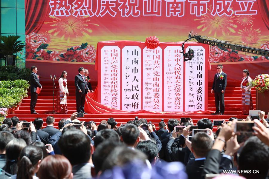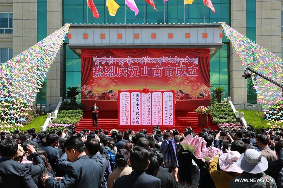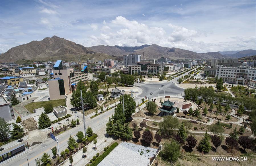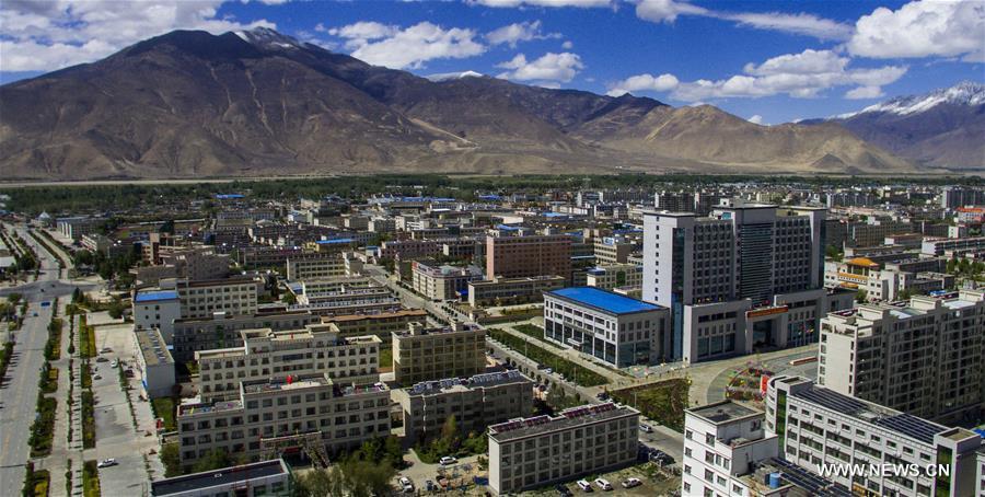 Photo taken on May 21, 2016 shows the Zedang Town in Shannan City, southwest China's Tibet Autonomous Region. China's State Council, or the cabinet, has approved the application of Shannan in Tibet Autonomous Region to be upgraded from a prefecture to a prefecture-level city in January. Located in southeastern Tibet with an average altitude of 3,700 meters, Shannan is the fifth prefecture-level city in Tibet after the regional capital Lhasa, Qamdo, Xigaze and Nyingchi. Shannan, which borders Indian and Bhutan, is the birthplace of the ancient Tibetan civilization with the region's first King, first palace, first piece of farmland, first temple and first religious script. (Xinhua/Liu Dongjun)