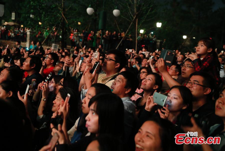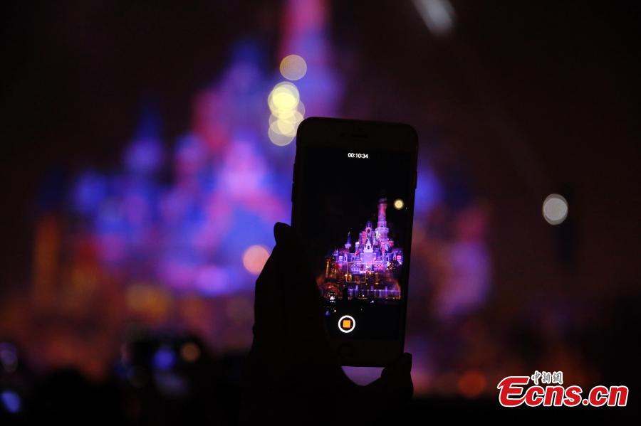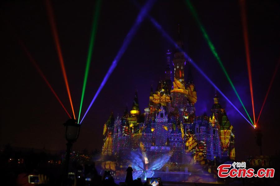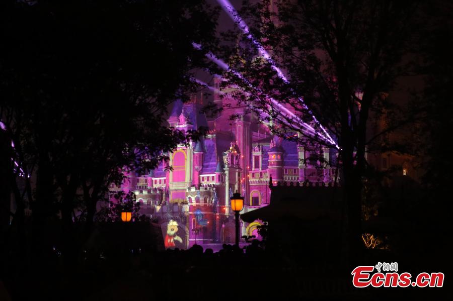 A light and firework show at the Shanghai Disney Resort, May 29, 2016. The theme park will officially open on June 16. (Photo: China News Service/Tang Yanjun)