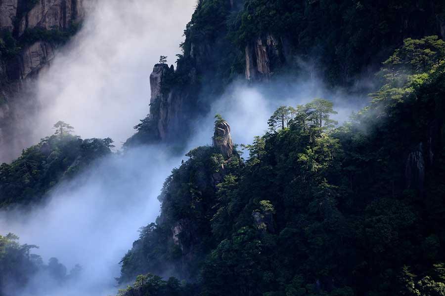 A magnificent view of a sea of clouds appears at the renowned Mount Huangshan scenic spot in Anhui province, May 30,2016.The famous holiday resort looks even more spectacular after a heavy storm, when the sky is clear and clouds cluster above the mountain to add an air of mystery. (Photo/Xinhua)
