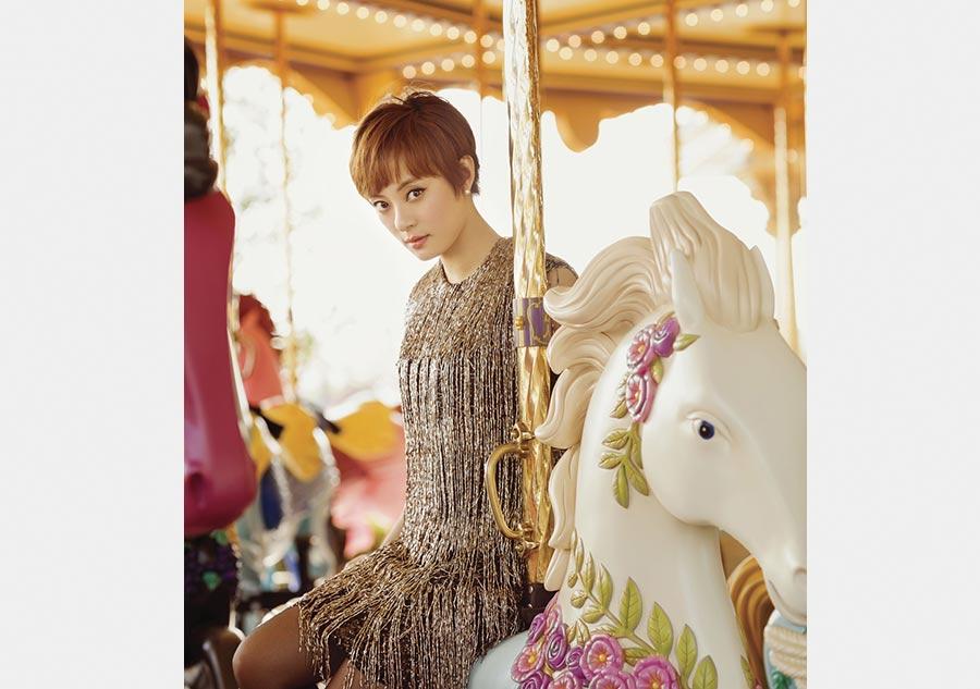Chinese actress and Ambassador for Disney Shanghai Resort Sun Li poses during a photo shoot in the theme park. (Photo/Xinhua)
