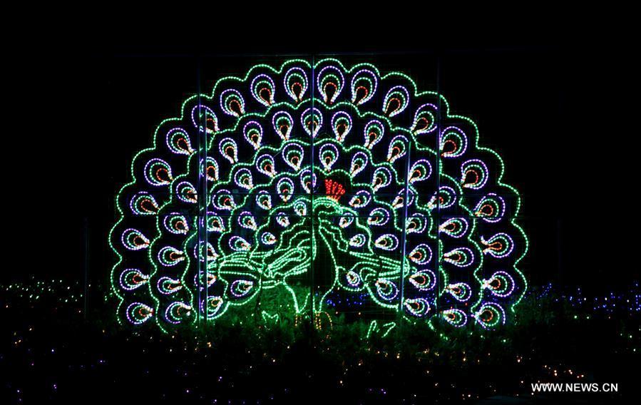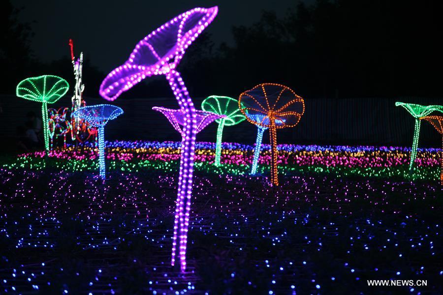 Colorful lights are displayed at an LED light festival in Linfen City, north China's Shanxi Province, June 3, 2016. (Xinhua/Su Qiang)