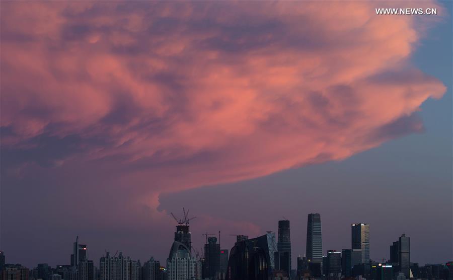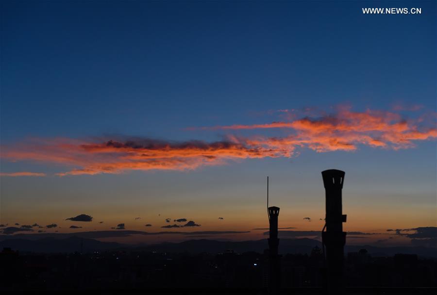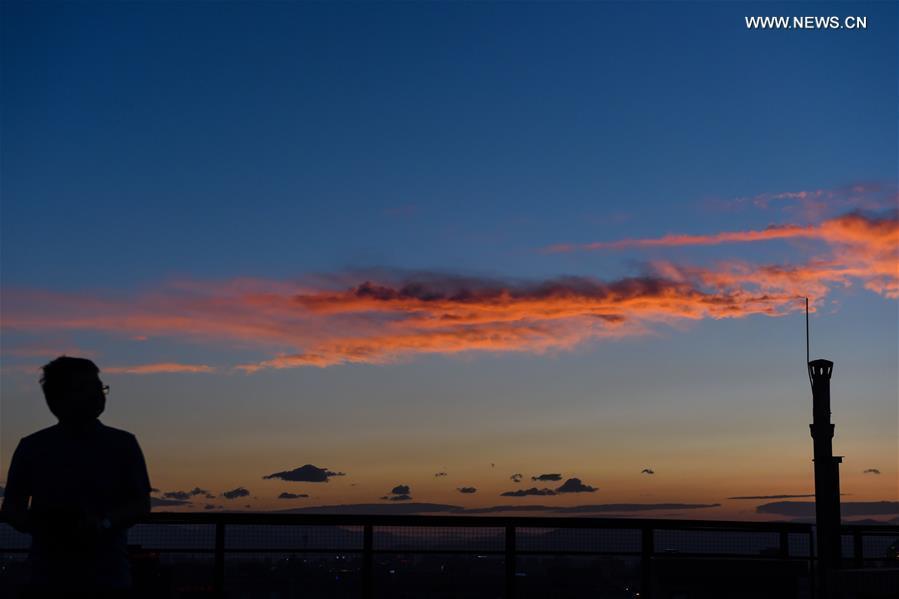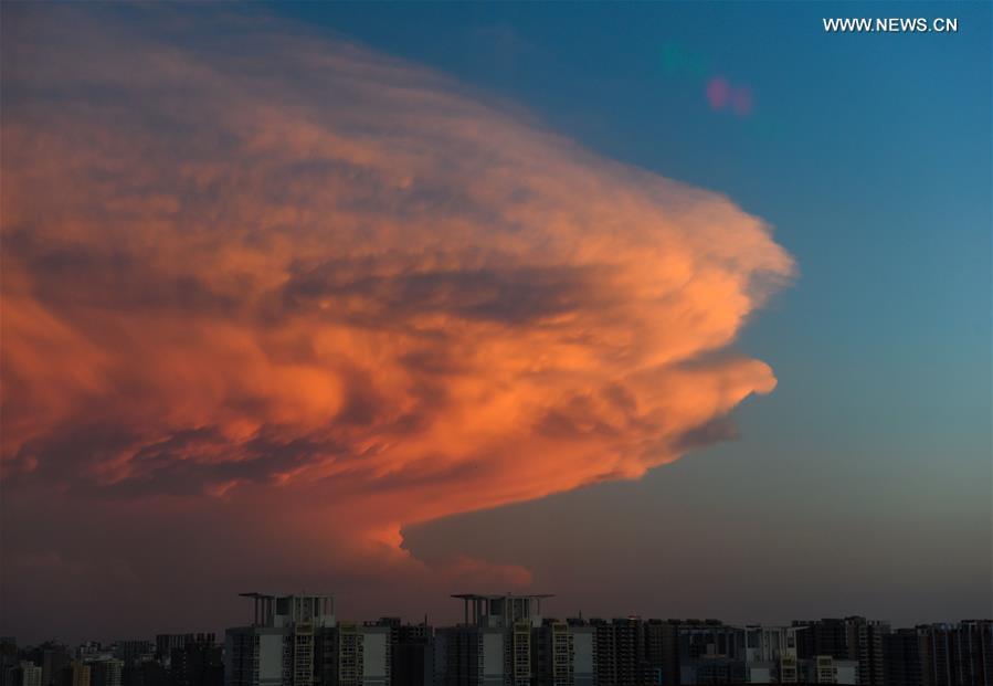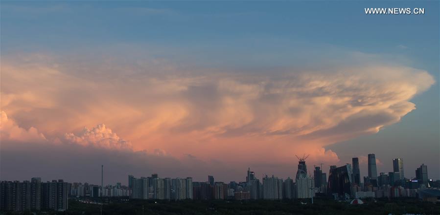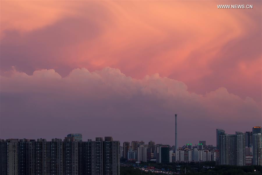 Photo taken on June 10, 2016 shows the sunset glow after rain in Beijing, capital of China. (Xinhua/Luo Xiaoguang)