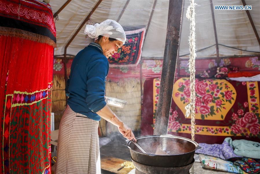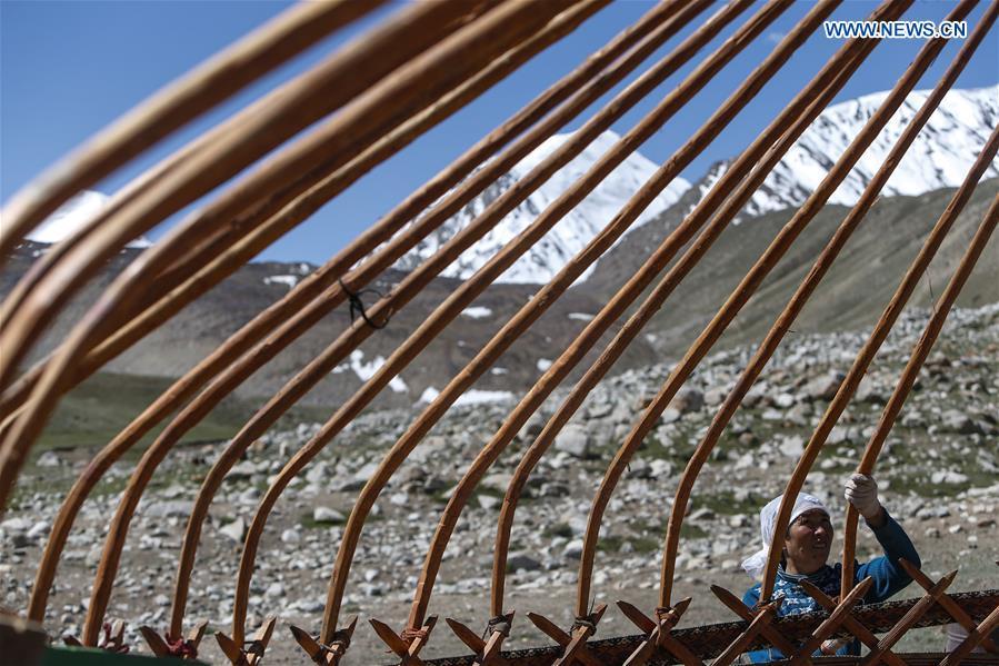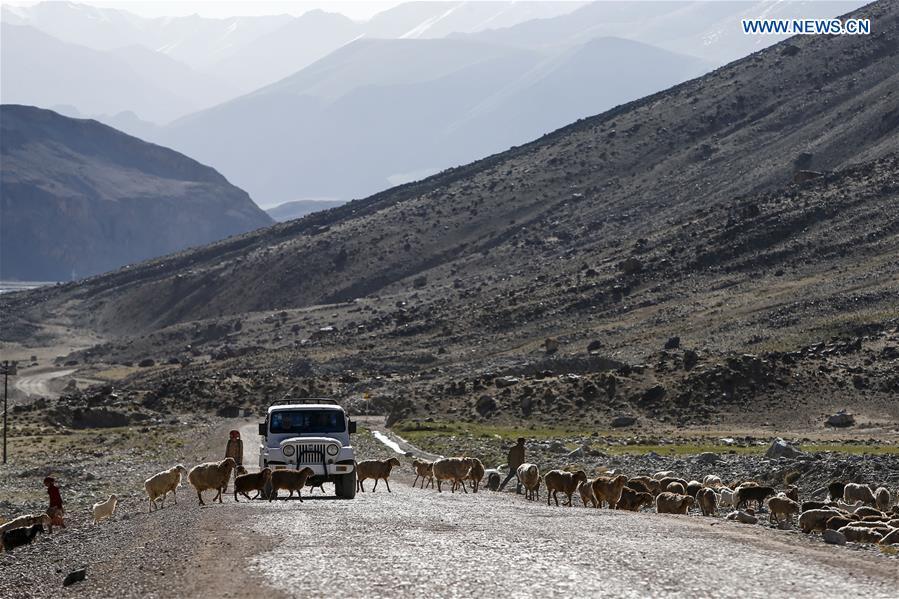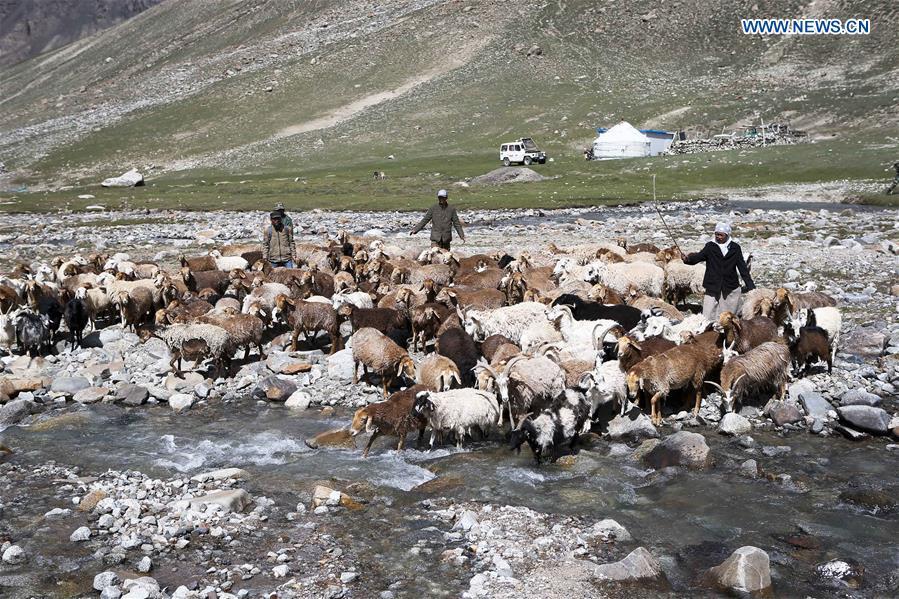 A herdsman of Kirgiz ethnic group moves with his livestock to the summer pasture in Atgayli village, the only village inside the Wakhan Corridor in northwest China's Xinjiang Uygur Autonomous Region, June 4, 2016. With an average altitude of over 4,500 meters above the sea level, Wakhan Corridor, a narrow strip of land connecting Afghanistan and China, used to be a trade route used by travellers going to and from China to central Asia since antiquity. The section inside China is about 80 kilometers long on the Pamirs Plateau. This remote, vast yet mysterious land is now inhabited by nomads of Tajik and Kirgiz ethnic groups. They move twice a year with all their livestock to chase richer pastures along the valleys, and these early summer days mark their busiest time of the year. (Photo/Xinhua)