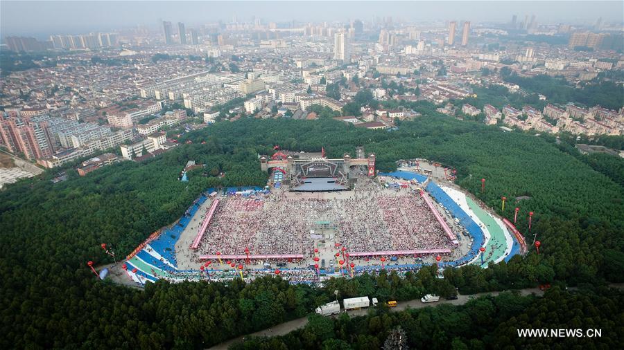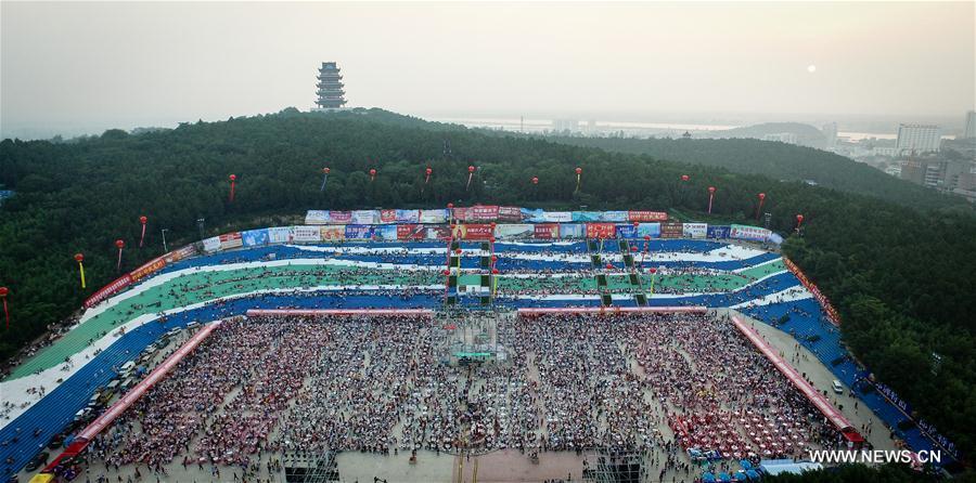 People eat crayfishes during a food week in Xuyi County of Huai'an, east China's Jiangsu Province, June 13, 2016. Nearly 30,000 people came to the crayfish food week on Monday. About 30 tons of crayfishes were sold out. (Xinhua/Li Xiang)