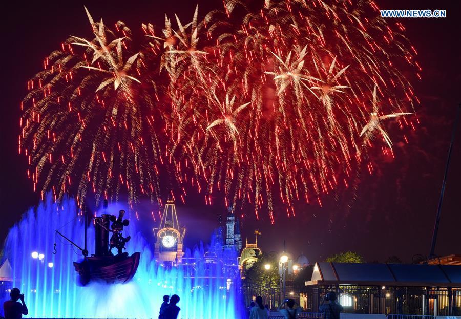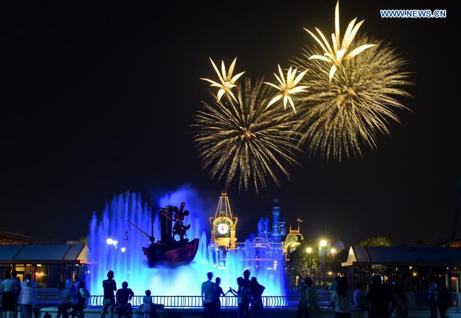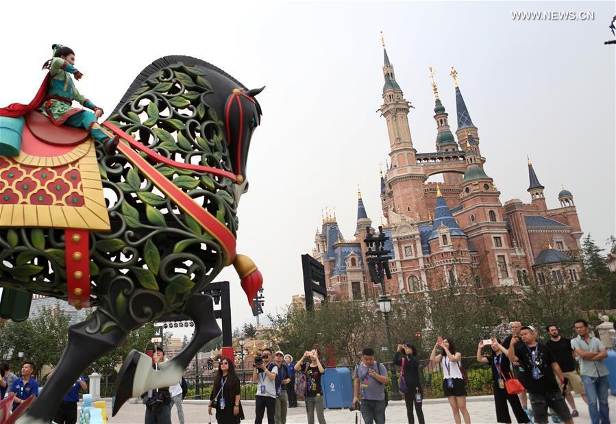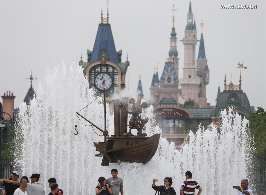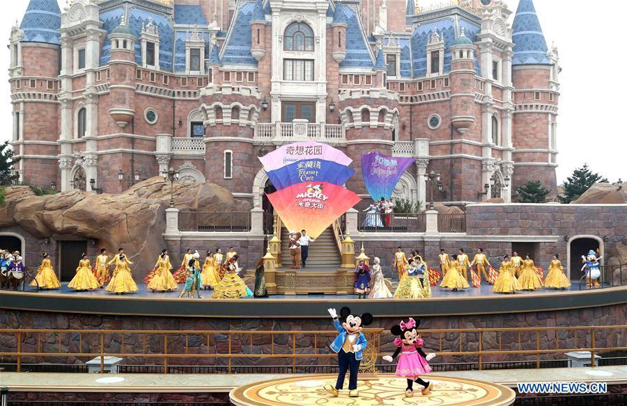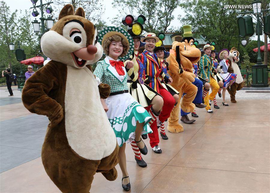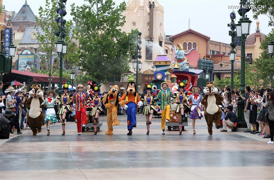 A staff member imitating Mickey of Disney classic cartoon characters takes part in a parade at Shanghai Disneyland in Shanghai, east China, June 15, 2016. The Shanghai Disney Resort opens on June 16. (Photo/Xinhua)