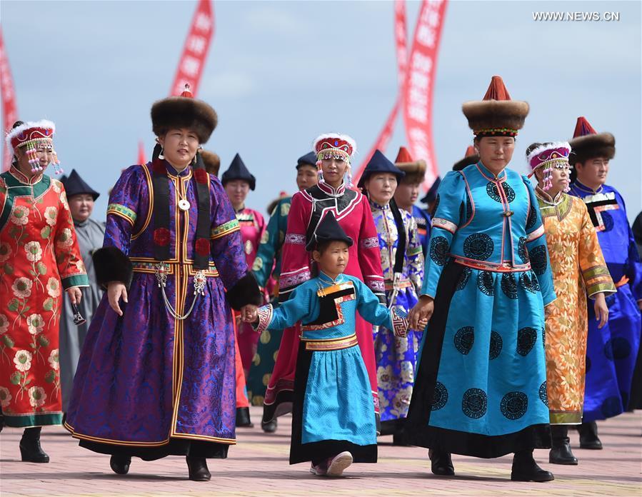 People of Ewenki ethnic group wearing traditional costumes perform horse racing in a parade for Sebin Festival in Ewenki Autonomous Banner, north China's Inner Mongolia Autonomous Region, June 18, 2016. The annual Sebin Festival is a traditional festival of Ewenki people, who follow the tradition to worship their ancestor, hold horse race and wrestling match. Sebin means happy and peaceful in Ewenki language. (Xinhua/Deng Hua)