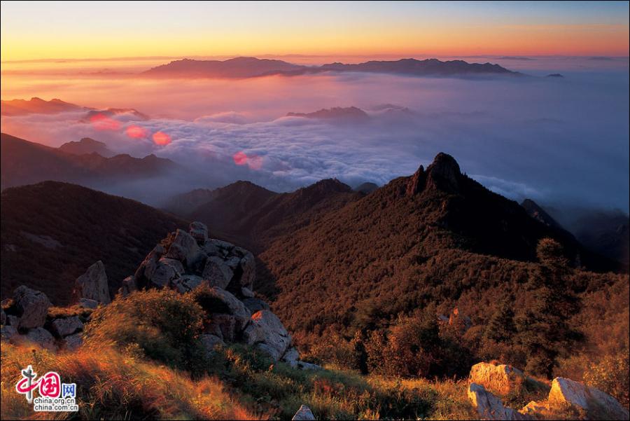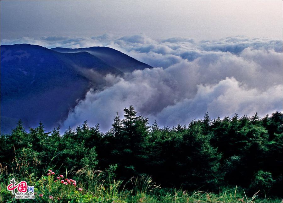 Mount Wuling National Nature Reserve, covering 142 square kilometers, sits at the intersection of Beijing, Tianjin, Tangshan and Chengde. The annual average temperature at the reserve is 7.6°C with an average temperature of 17.6°C during the hottest month, making it an ideal place to escape the summer heat. With a forest coverage rate of 93 percent, the reserve is also a great place to find clean air. (Photo/China.org.cn)