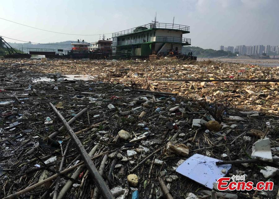 Garbage floats on the Yangtze River in Southwest China's Chongqing Municipality, June 20, 2016. Chongqing has boosted efforts to clean up the river after rainfall on the upper reaches brought a mass of refuse. (Photo: China News Service/Zhou Yi)