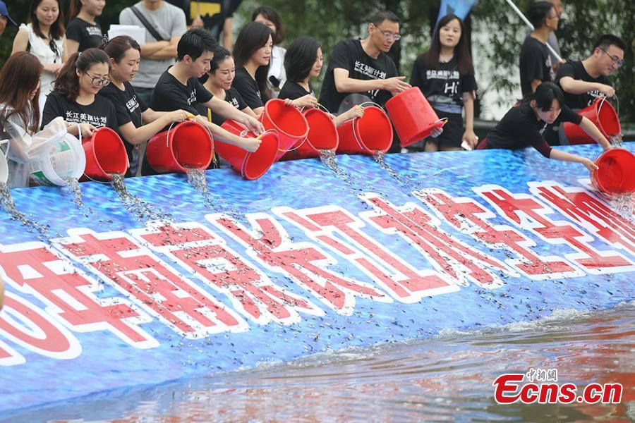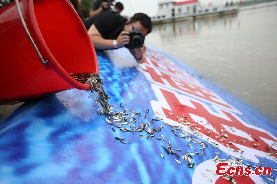 Nanjing promotes animal protection by releasing one million fish fries(1/3)