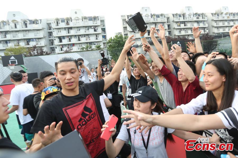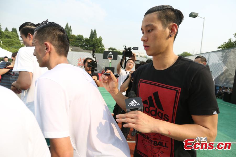 NBA player Jeremy Lin makes an appearance at an interactive event with students at Fudan University, Shanghai, June 21, 2016. (Photo: China News Service/Zhang Hengwei)