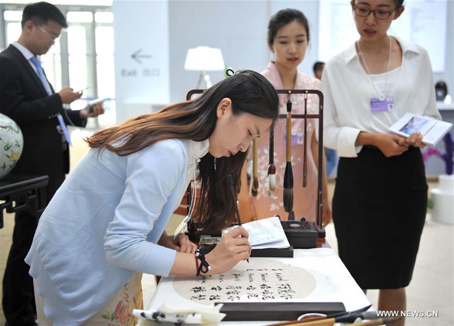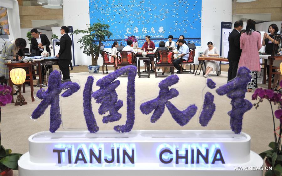 A robot is shown at Tianjin display area during the Summer Davos Forum in Tianjin, north China, June 27, 2016. (Photo/Xinhua)
