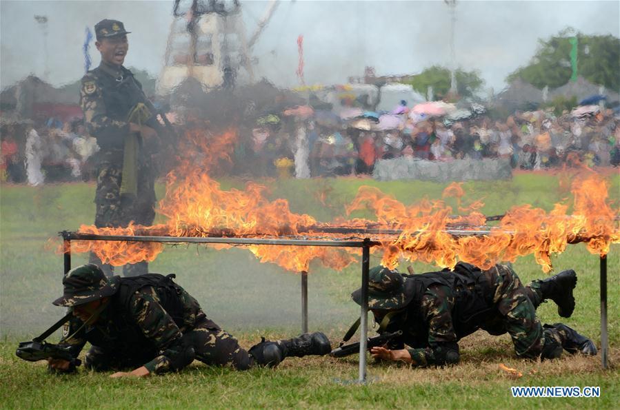 Soldiers of Hong Kong Garrison of the Chinese People's Liberation Army (PLA) perform during the open day in south China's Hong Kong, July 1, 2016. To celebrate the 19th anniversary of Hong Kong's return to the motherland, Hong Kong Garrison of PLA held an open day, allowing local residents to visit their barracks on Friday. (Photo: Xinhua/Liu Yun)
