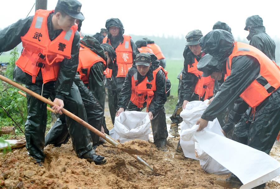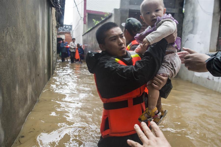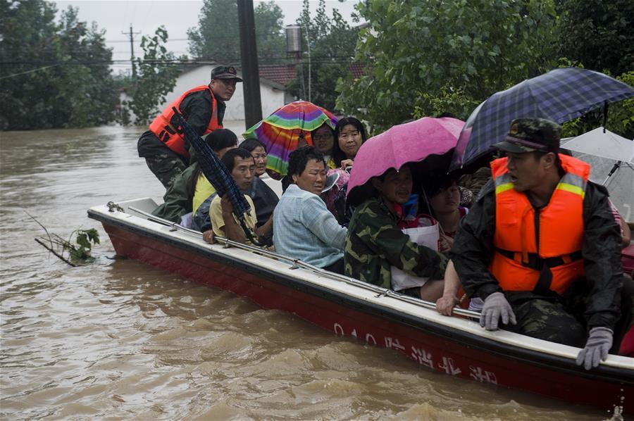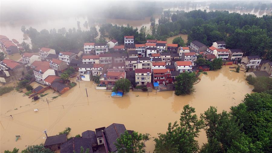 An aerial photo taken on July 2, 2016 shows inundated areas in Xinzhou District after a dike breach, in Wuhan, central China's Hubei Province. Heavy rainfall caused a dike breach on the Jushui River in Xinzhou District Friday. Six villages and one community near by the breach were flooded. More than 700 rescuers were sent there to evacuate stranded villagers. (Xinhua/YB Mountain & Water Rescue Team)