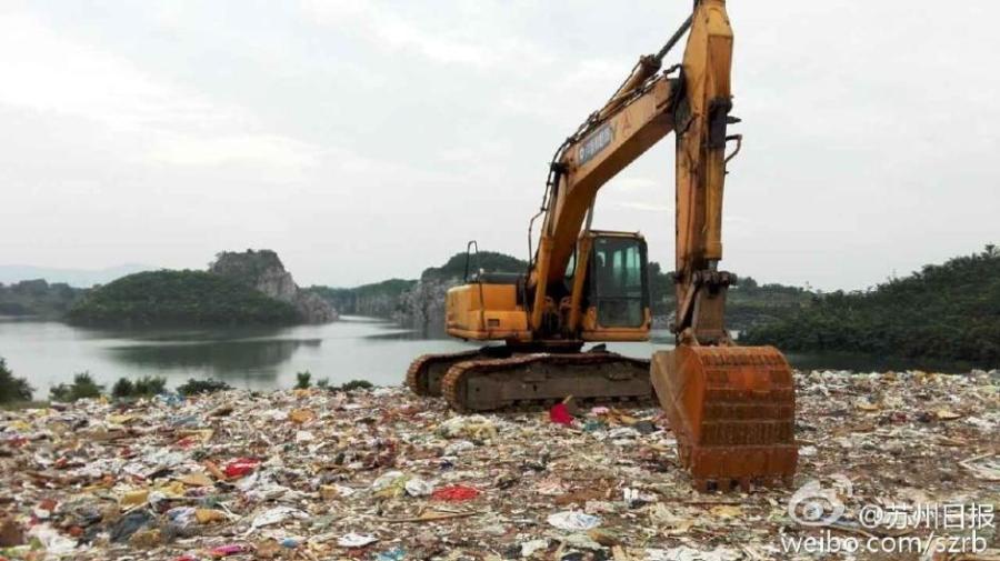 Boats carrying household garbage and construction waste are found docked at a wharf inside a provincial rehabilitation center at Jiangdong Village on Xishan island in east China's Taihu lake. The boats were all covered and suspects planned to dump the waste on the abandoned dike located in the center. Local authorities worked with police, and environmental and maritime agencies put the boats under detention while an investigation was launched. There's been no change in the water quality.The island, about 40 kilometers southwest of Suzhou, covers an area of 90 square kilometers and is the largest island in Taihu Lake. Besides offering a unique view of the lake, the island is also known for its rolling hills, imposing rocks and winding paths. (Photo/Weibo account of Suzhou Daily)