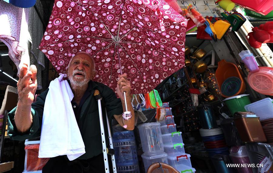 A Jordanian man stands in front of his shop in Amman, Jordan on July 5, 2016. Muslims are preparing for Eid al-Fitr which marks the end of the fasting month of Ramadan. (Photo/Xinhua)