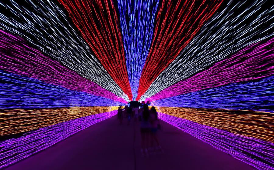 Photo taken on July 6, 2016 shows a light show during a light festival in Zhangjiakou, north China's Hebei Province. More than 3,000 LED lights here created a dreamy world. (Photo/Xinhua)