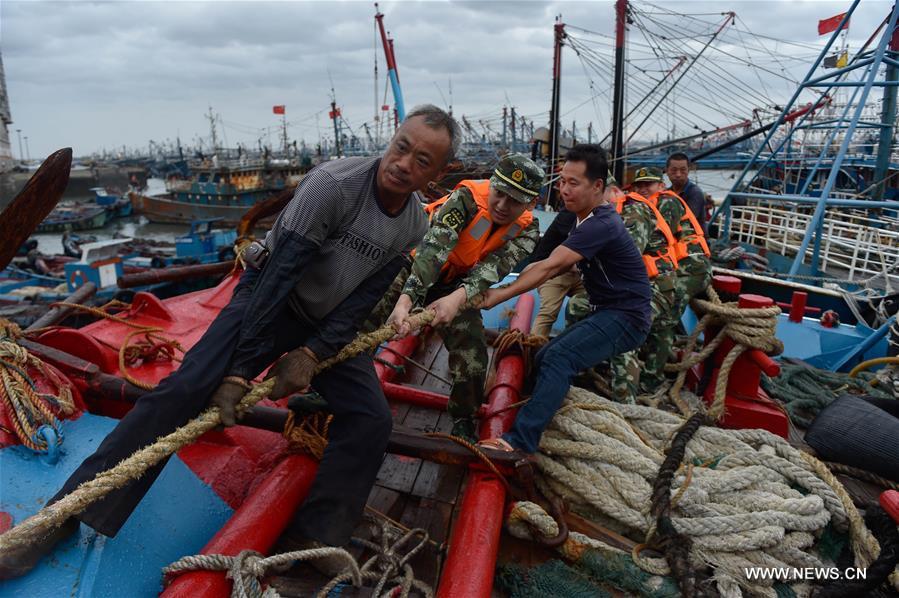 Fishing boats are berthed in a harbor in Shenhu Town in Jinjiang City, southeast China's Fujian Province, July 8, 2016. Typhoon Nepartak is expected to reach the coast of Fujian on Saturday morning after landing at 5:50 a.m. on Friday at Taiwan's Taitung, packing winds of up to 55 meters per second. (Xinhua/Song Weiwei)