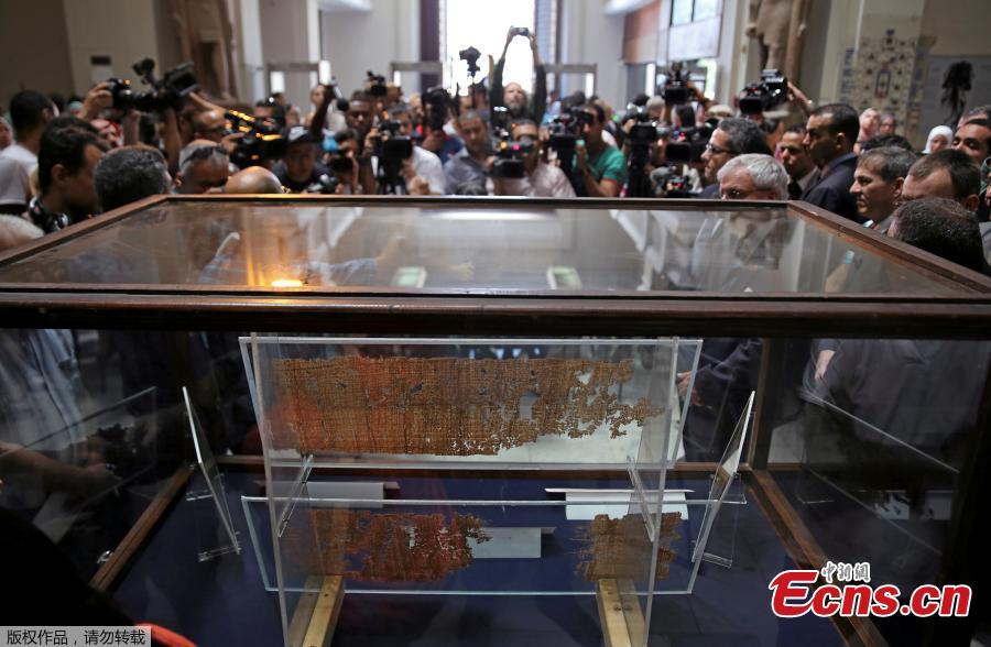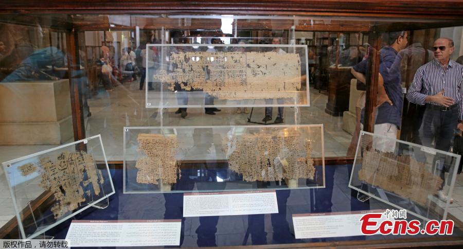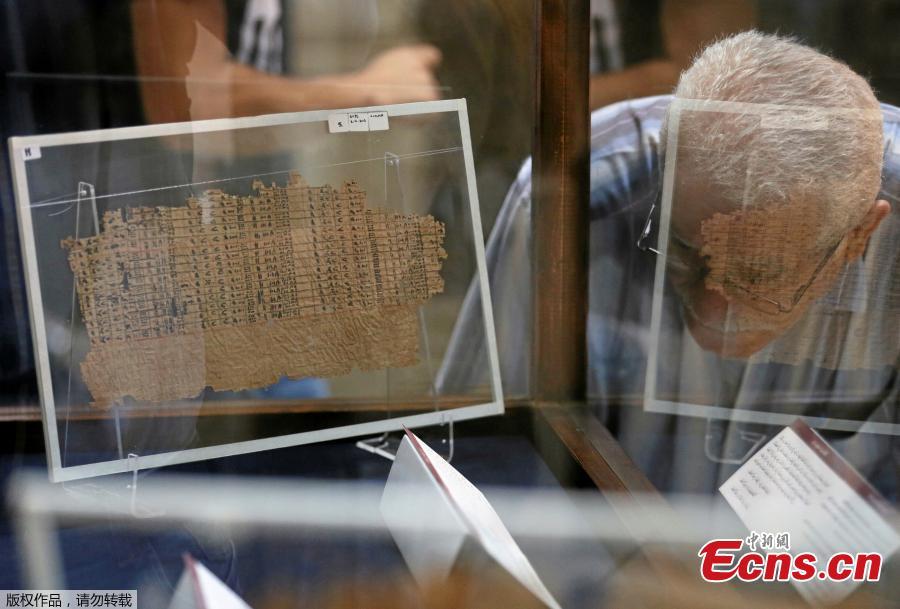 A tourist looks at Papyrus of King Khufu at the opening exhibition of 'The Papyri of Khufu from Wadi al-Jarf' for the first time at the Egyptian Museum in Cairo, Egypt, July 14, 2016. (Photo/Agencies)