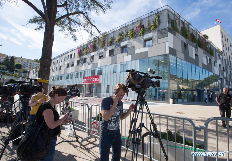 A woman walks past the entrance of Pasteur Hospital in Nice, France on July 15, 2016. French Prosecutor of the Republic Francois Molins announced Friday in a press conference that 84 people, including 10 children and adolescents, were killed Thursday night in Nice during a terrorist attack. A total of 202 people have been injured, Molins said, adding that 52 among them are in critical condition and 25 still in reanimation. (Xinhua/Xu Jinquan)