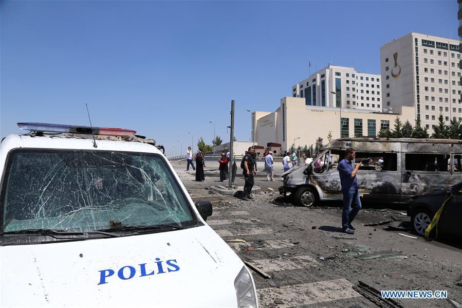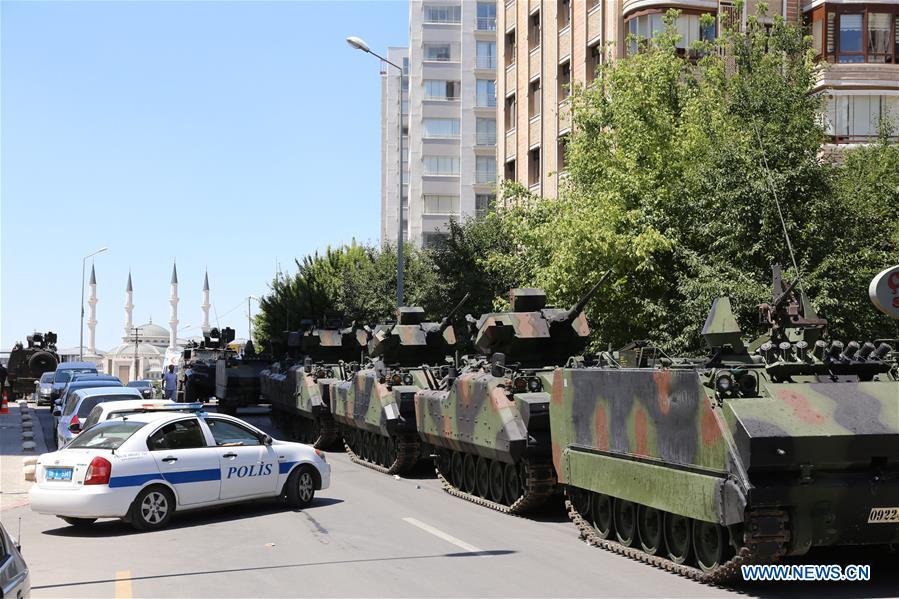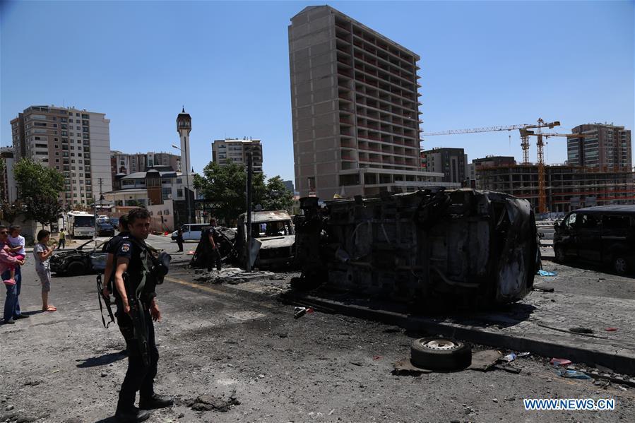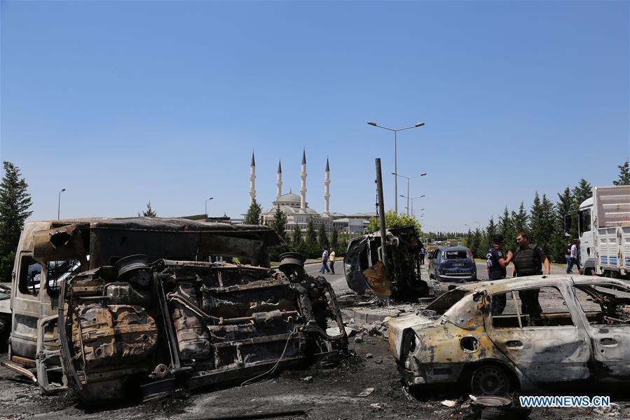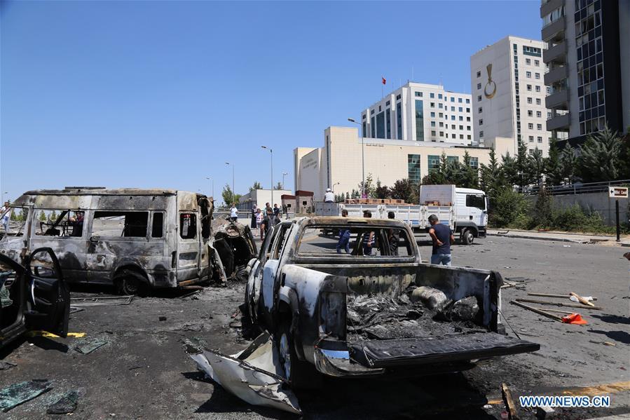 Damaged vehicles are seen outside the presidential palace in Ankara, Turkey, July 16, 2016. Turkey's prime minister said on Saturday that at least 161 people were killed and 1,440 wounded in the coup attempt that swept the country on Friday night but was foiled by Saturday morning. (Xinhua/Zou Le)